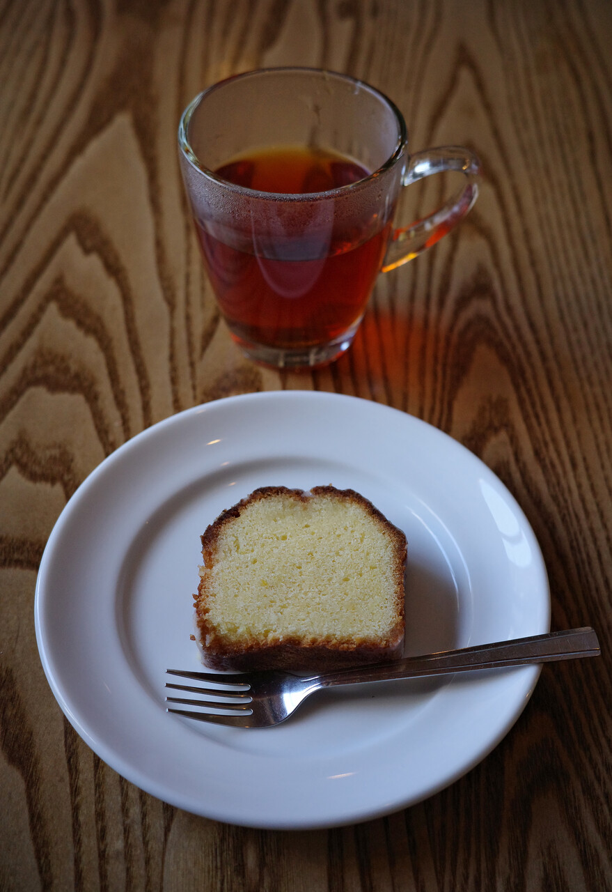 数量限定なので、予約おススメです。食後にオレンジケーキと無料薬紅茶をいただき。セットで300円。