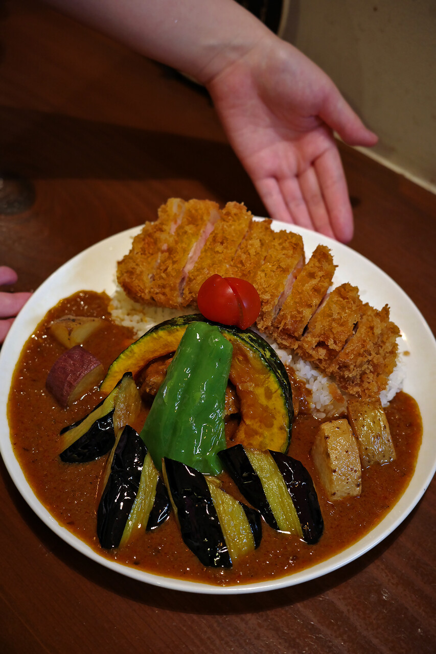 からの【オカノカリー】という安定のコース。今日は、半日分の野菜とスパイシーチキンカレーにバージョンアップしてさらに美味しくなったロースカツをトッピング。昼も夜もロースカツでした。たまたまです。