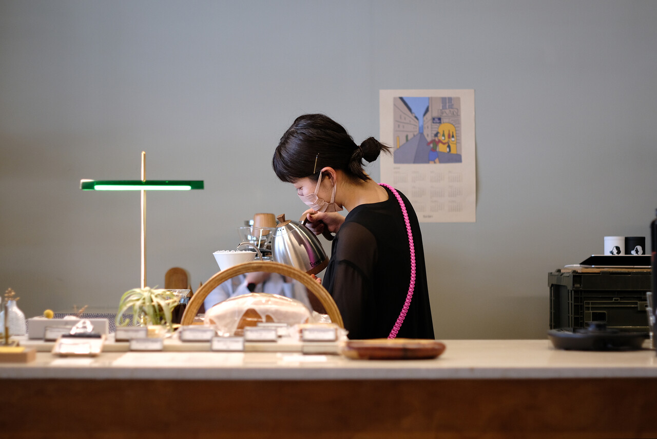 【Coffee & Cake Stand LULU】に寄ったらゲストバリスタで 【珈琲真希】だった。以前は福岡市内の珈琲店で働いてて、今は長崎県の島暮らしのマキちゃん。今日と明日は【LULU】でコーヒーを淹れてるって。そうやった、そうやった。今日だったのね。