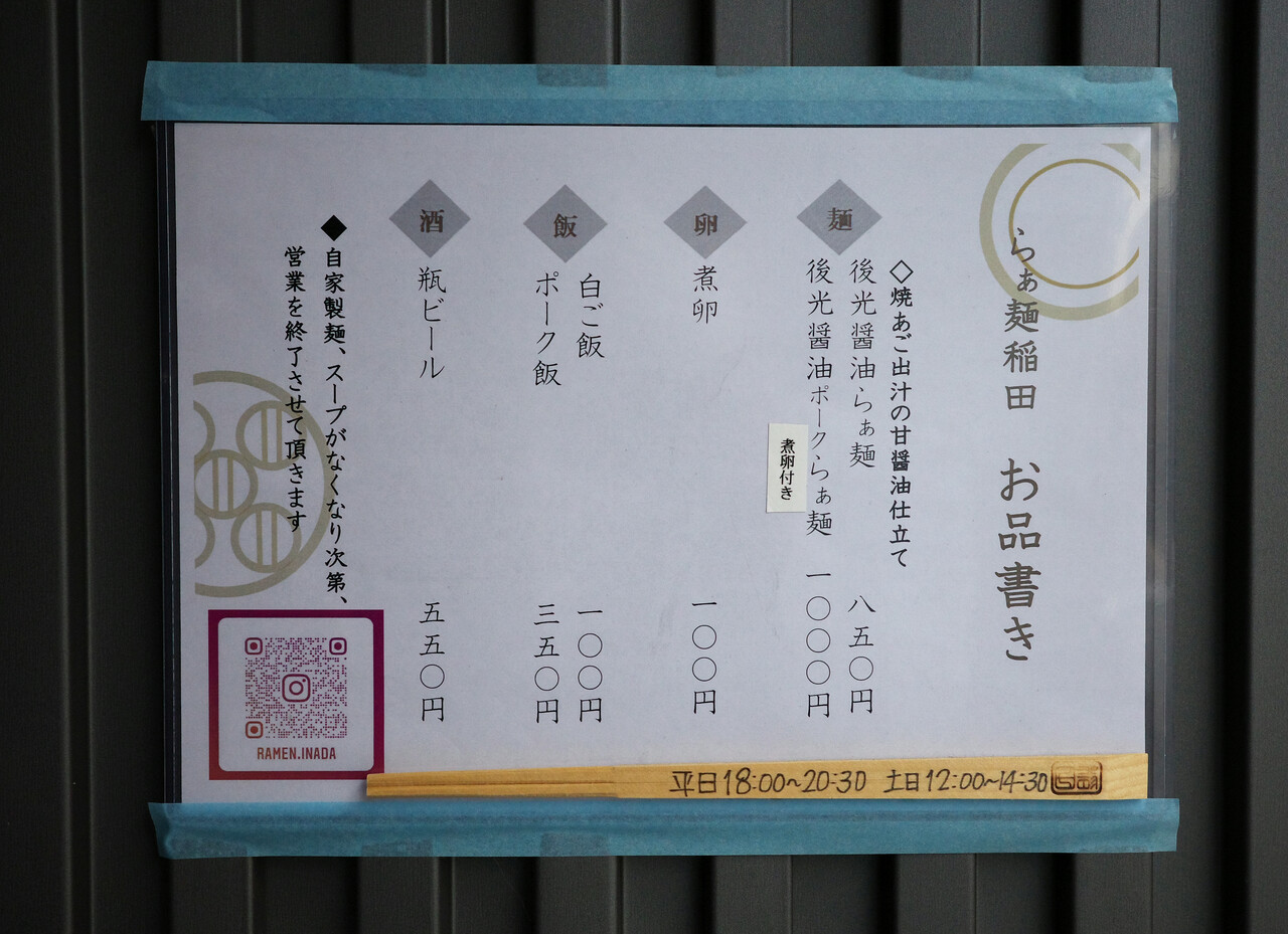 店名: らぁ麺稲田