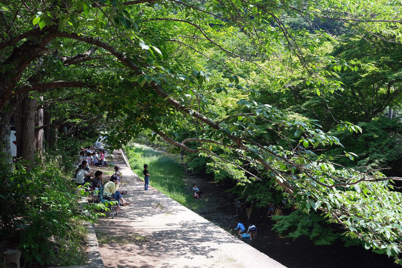 猪野川では家族連れが水遊び。昔からここは夏場に子供たちのちょっとした避暑スポットだったけど、今はこんなになってるんだ〜。週末はすごく賑わってるらしい。令和の時代に福岡市内からちょっと離れたところにこんな昭和感のある遊び場があるなんて素敵だわ。