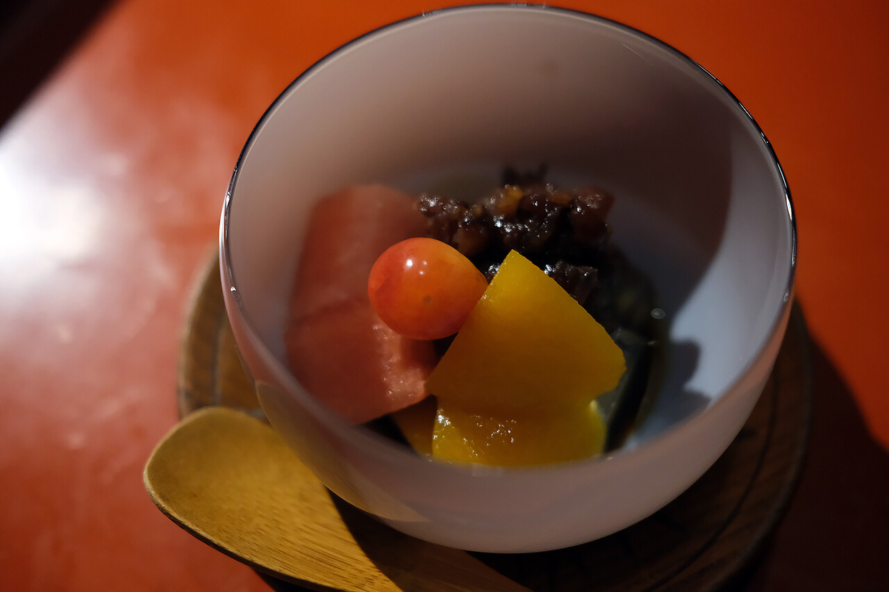 今日も美味しかったなぁ。料理はおまかせコースのみ。全ての塩梅が絶妙。カウンターから料理する手捌きを見ているのも楽しい。先付け、刺身、寿司、煮物、焼き物、揚げ物、汁物、漬物、そして土鍋で炊くご飯とデザート。お腹いっぱい。お酒も少しいただいて一人8,000〜9,000円くらい。