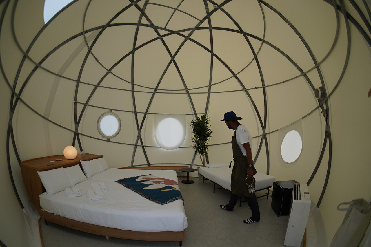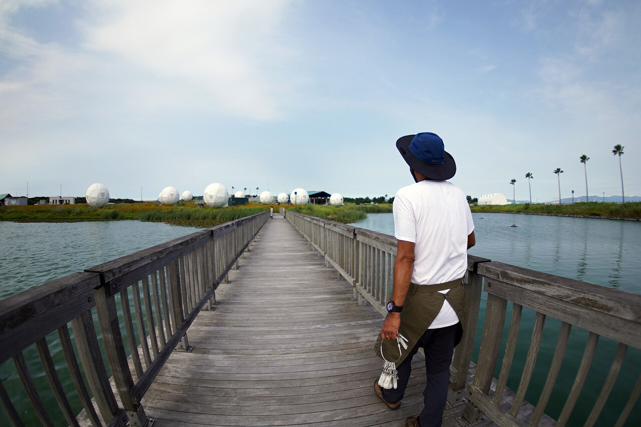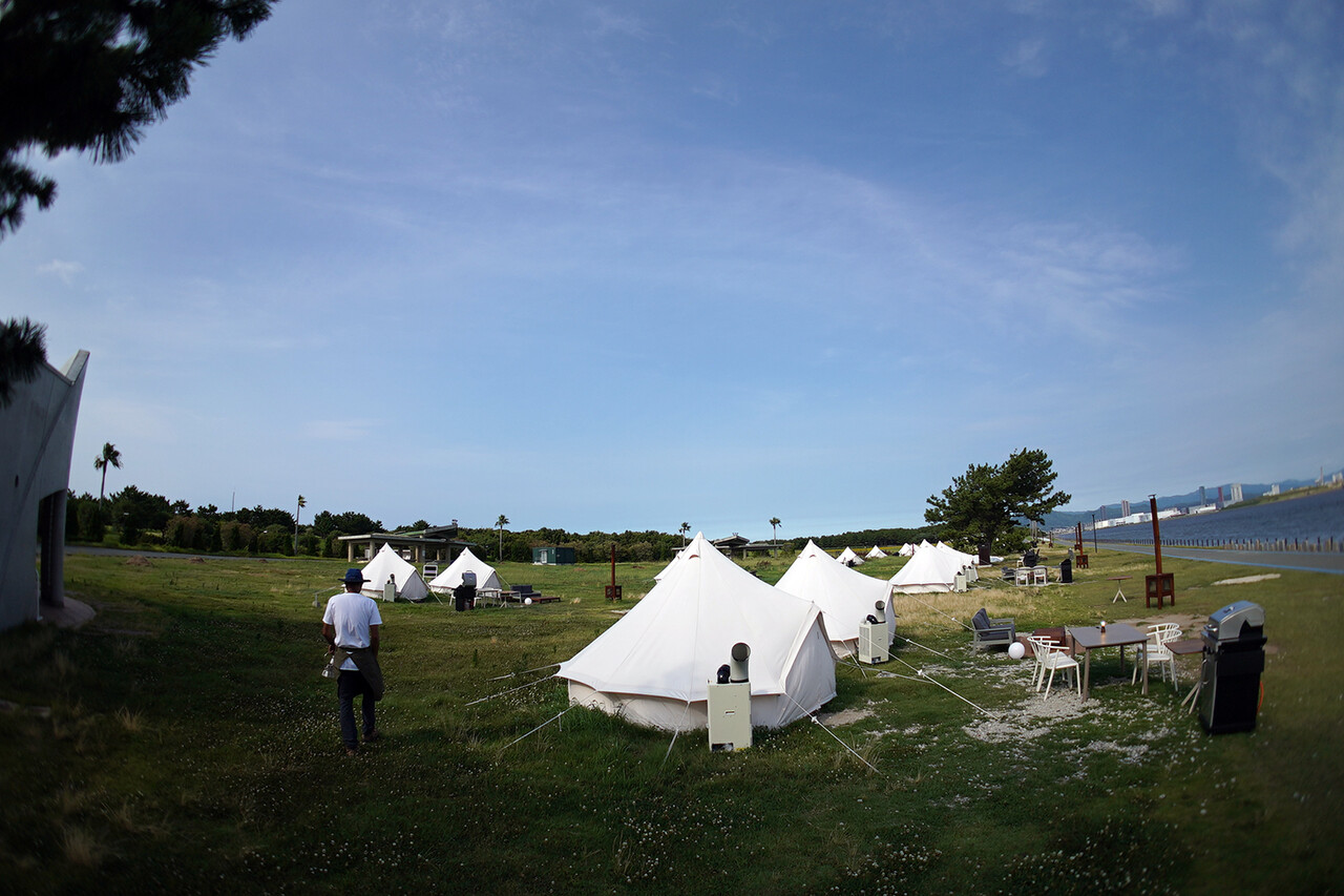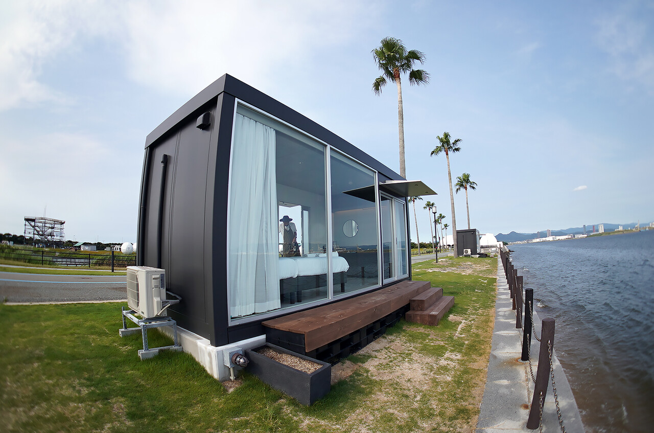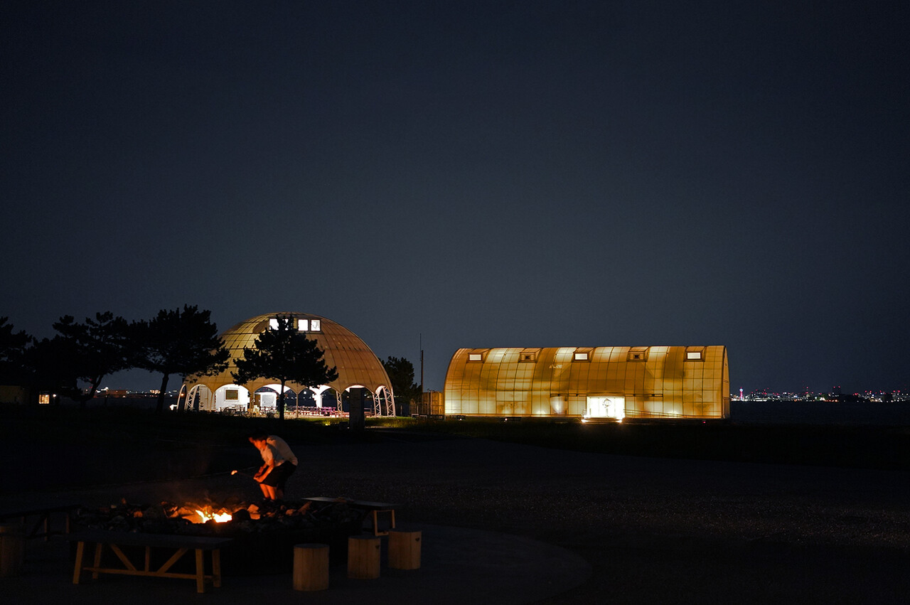今年3月に東区「海の中道公園」内に出来た泊まれる公園【INN THE PARK】。パークツーリズムとして「光と風の広場」に出来た【INN THE PARK】はメディアなどでも取り上げられて話題になりましたね。【INN THE PARK】の「INN」は、「宿」という意味ですね。「IN THE PARK(公園の中)」との掛け言葉かな。