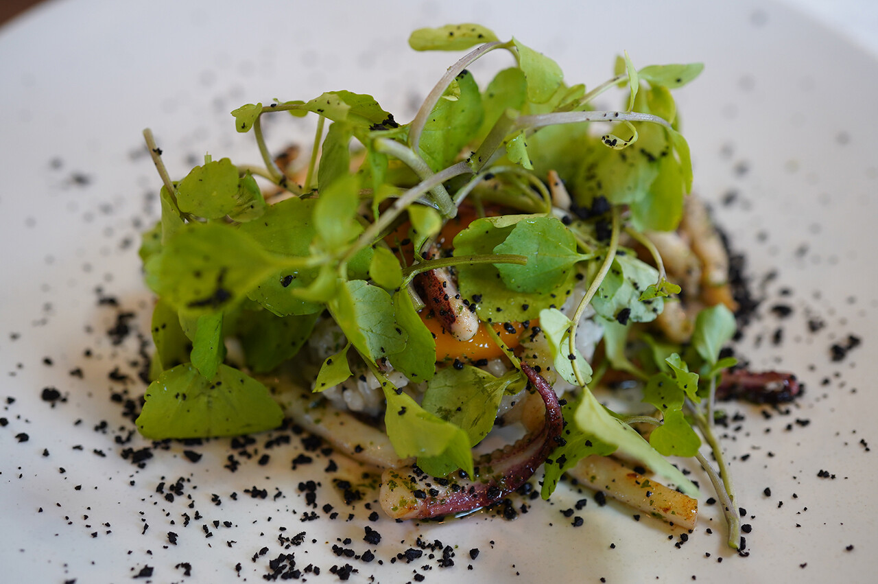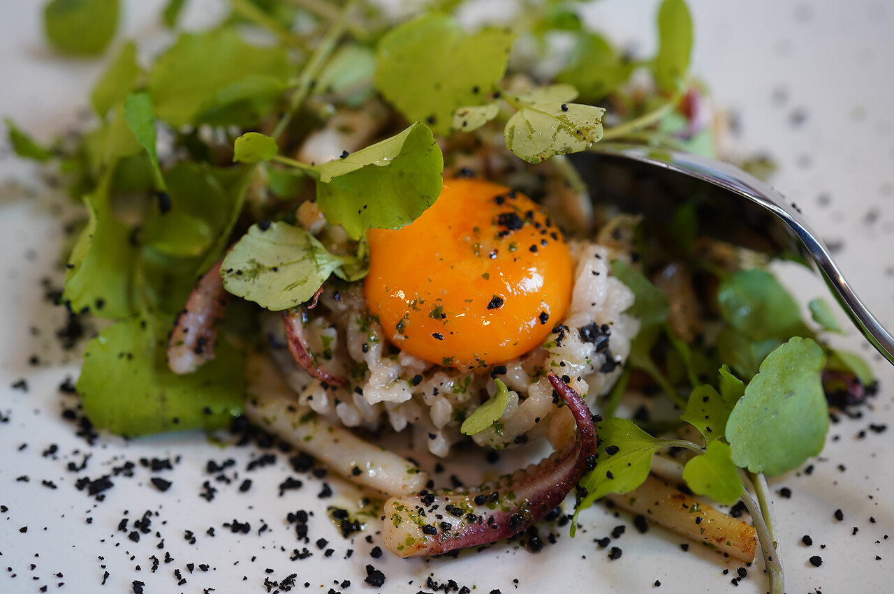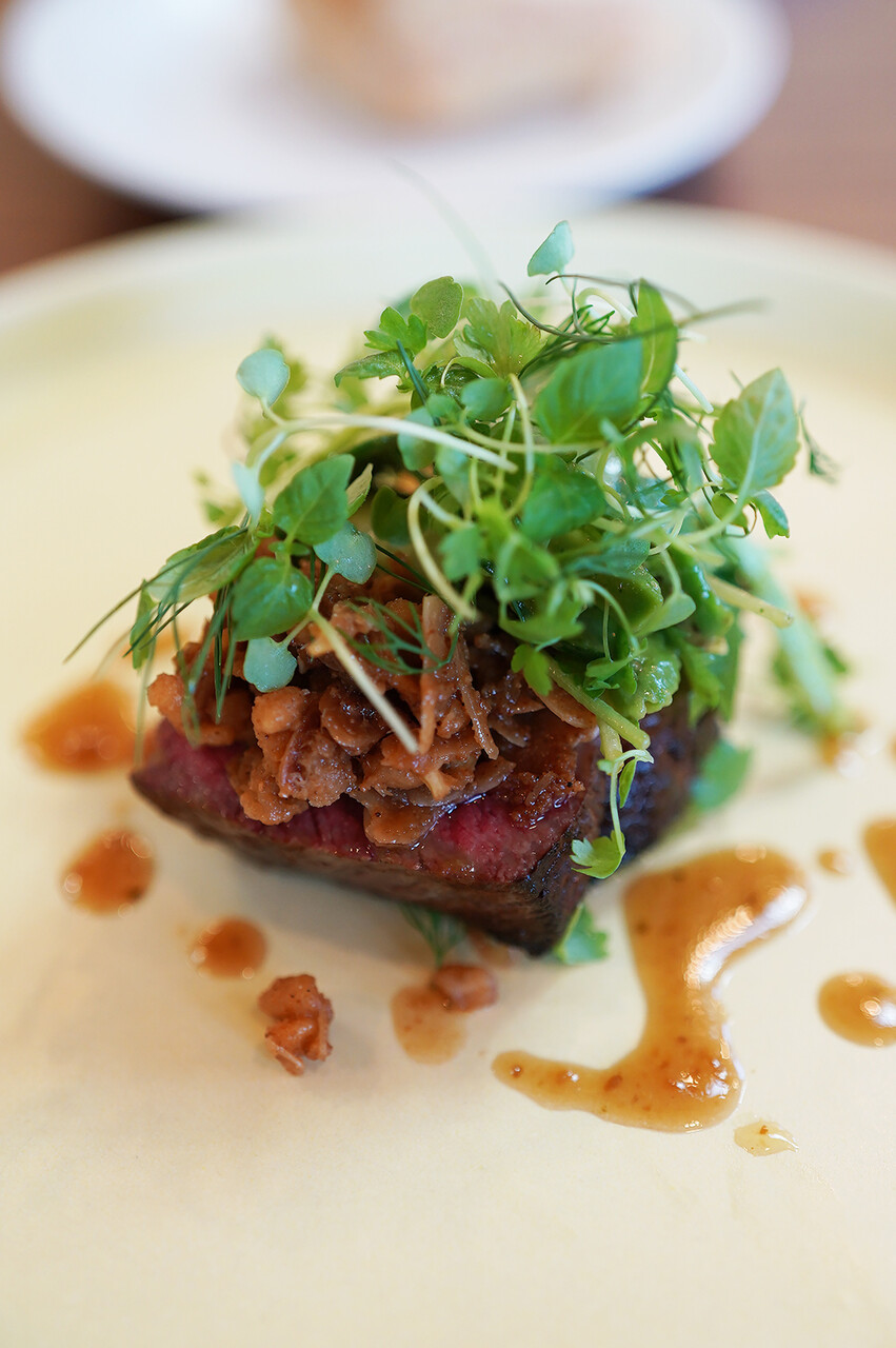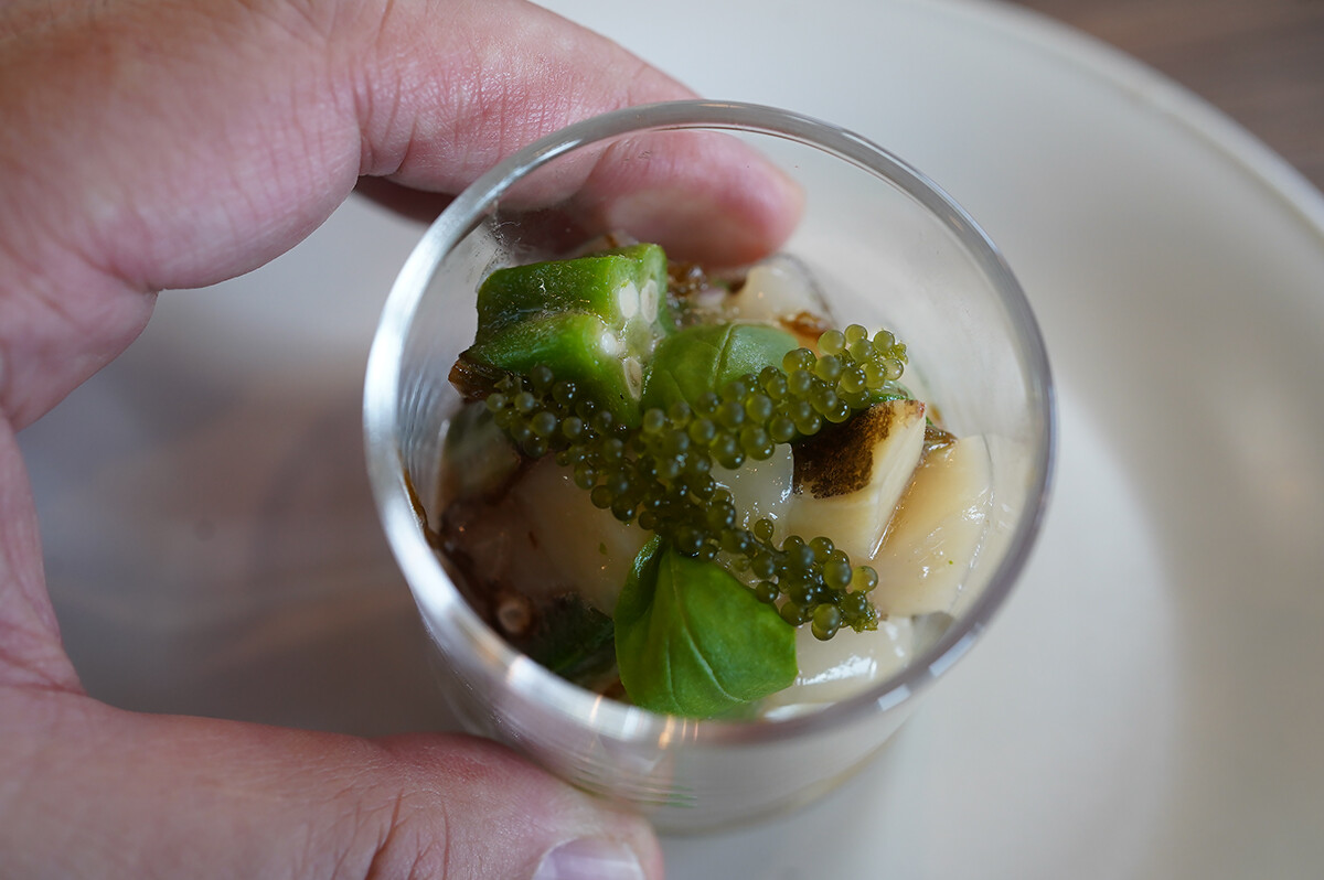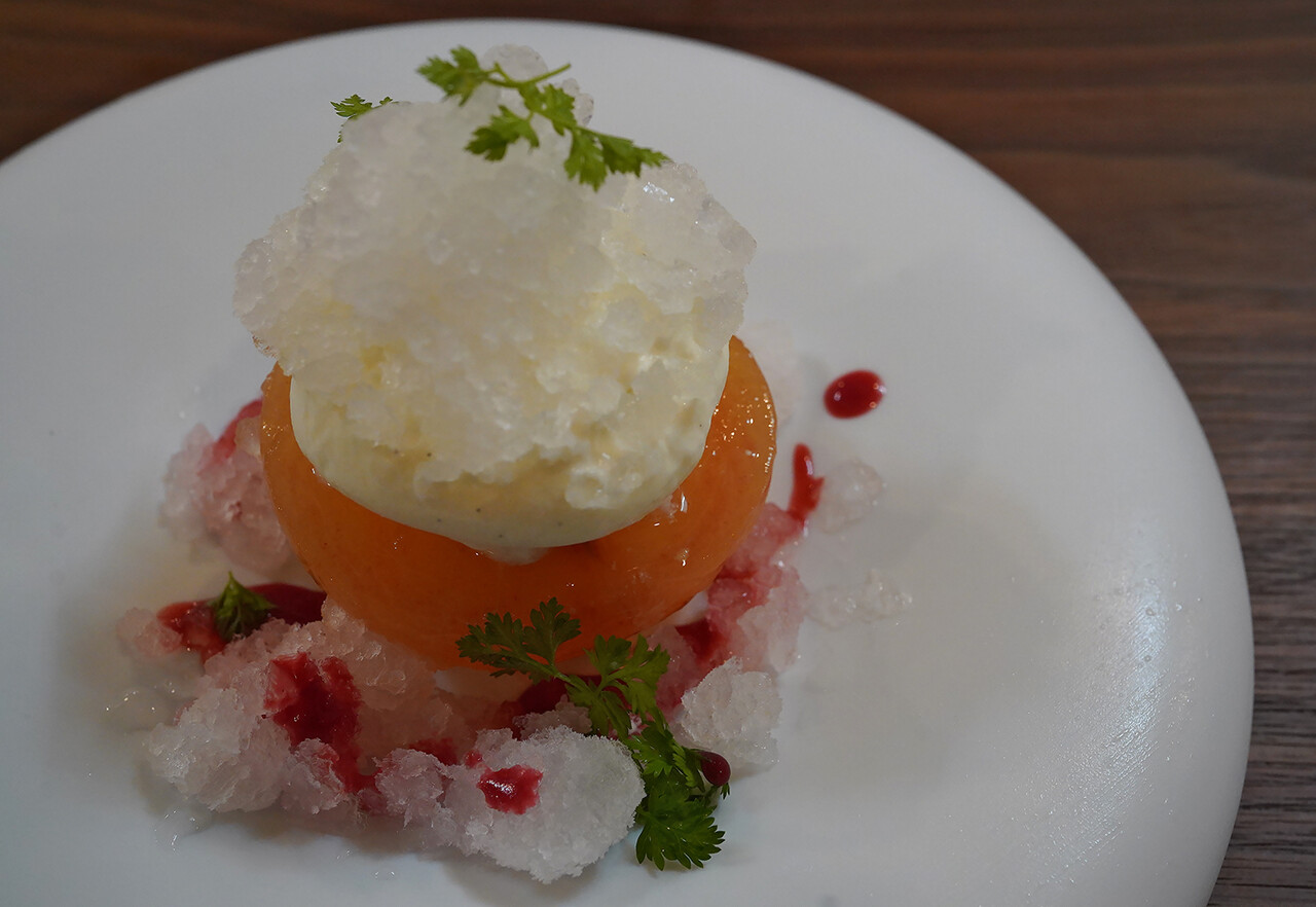 素材にこだわる、見せ方にもこだわる、しかし奇をてらわない。前菜から一つ一つ全部がメイン料理かと思うほど。特に前菜の中に出てきたハモ料理はメインに持っていけるやろ〜〜のびっくり。イカの卵かけご飯は最高だった。経産牛の薪焼きもボリューミーで食べ応え十分。全てにおいて薬味やソースが和洋折衷的な新しいフレンチっぽい仕上げ。そしてデザートの高級かき氷もインパクトすごかった。