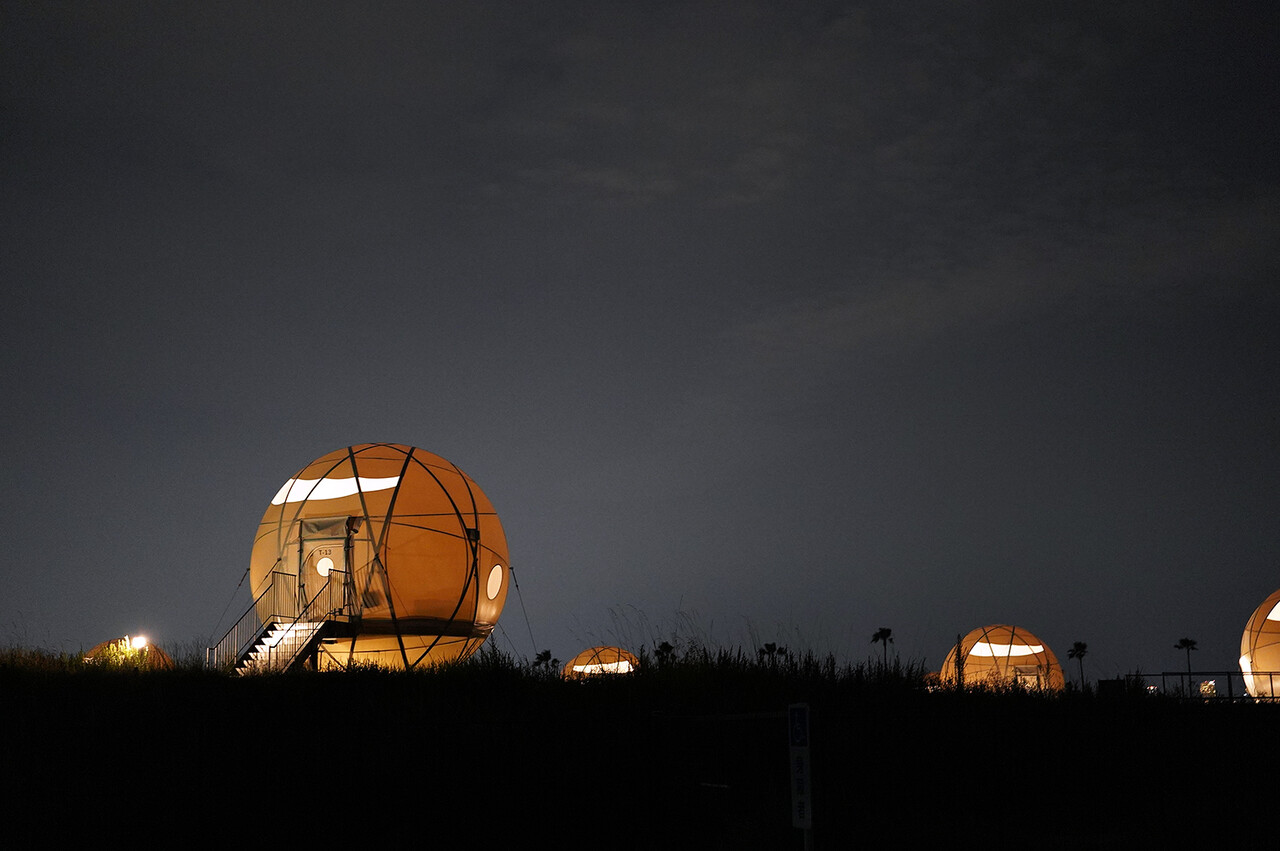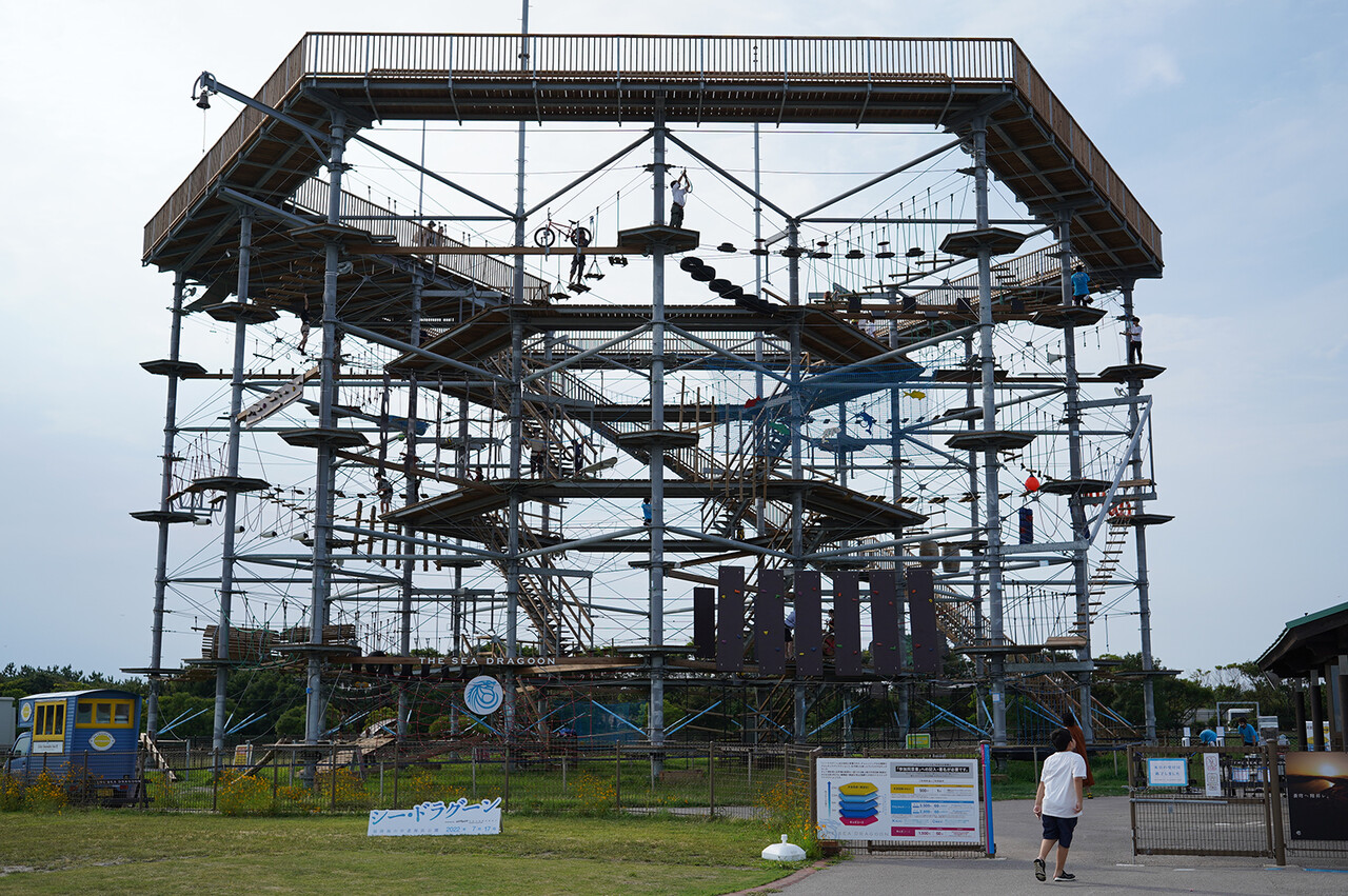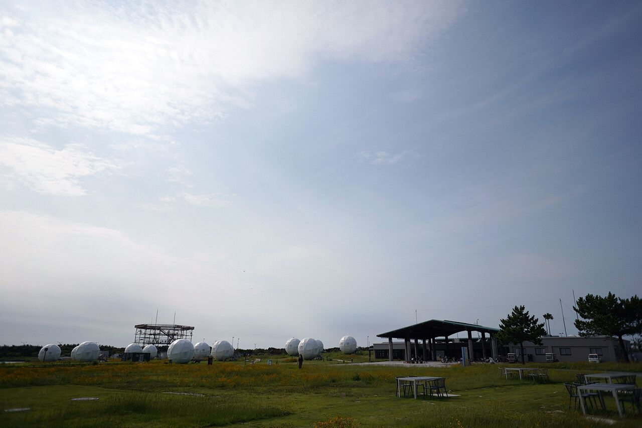 博多湾を臨む浜辺に球体テントやオシャレなコンテナ型キャビンや グランピングなどの宿泊施設がずらり。自然を生かした公園や、1日60円のドッグランエリア、アスレチックビルみたいな「シー・ドラグーン」。サンシャインプール、動物の森、乗馬厩舎、フラワーミュージアムなど、「海の中道公園」内をレンタル自転車などで移動すれば子供連れでも1日遊べる海浜公園ですね。