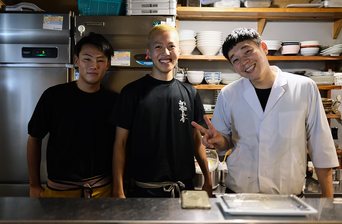 大将は【新博多醤油そば もやい】に専念しているということで、こちらはスタッフにお任せされてるけど、その中に息子さんも手伝ってた。彼をはじめ若くて元気で明るいスタッフが気持ちいい。建物は古いけど綺麗に整理されてて清潔感もあって良かった。