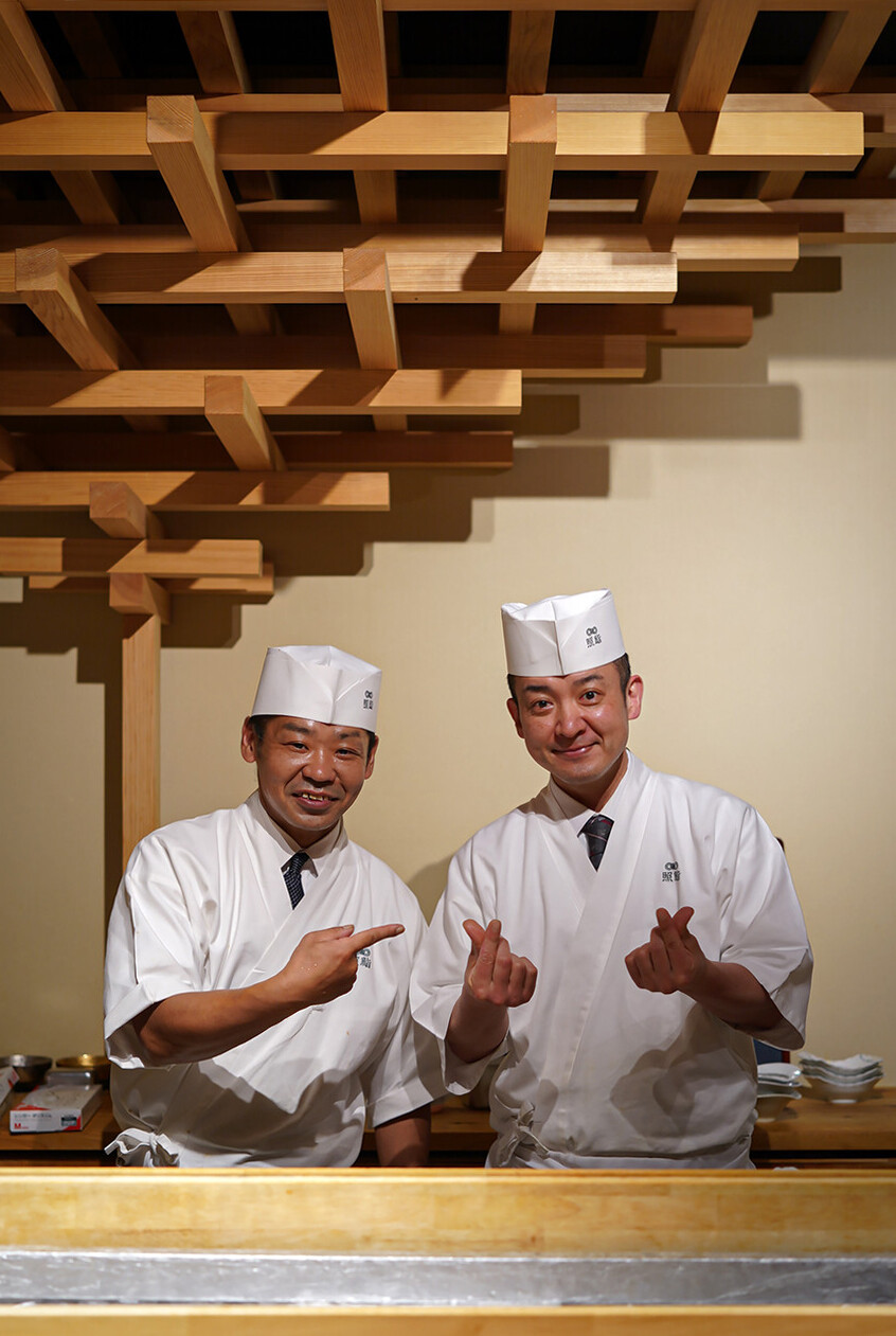 久しぶりに東区照葉【照鮨】で晩ごはん。去年の12月以来だったけど相変わらずのツートップ寿司職人の記念写真は今回もオッサン二人で指ハート。流行ってるのか(笑)