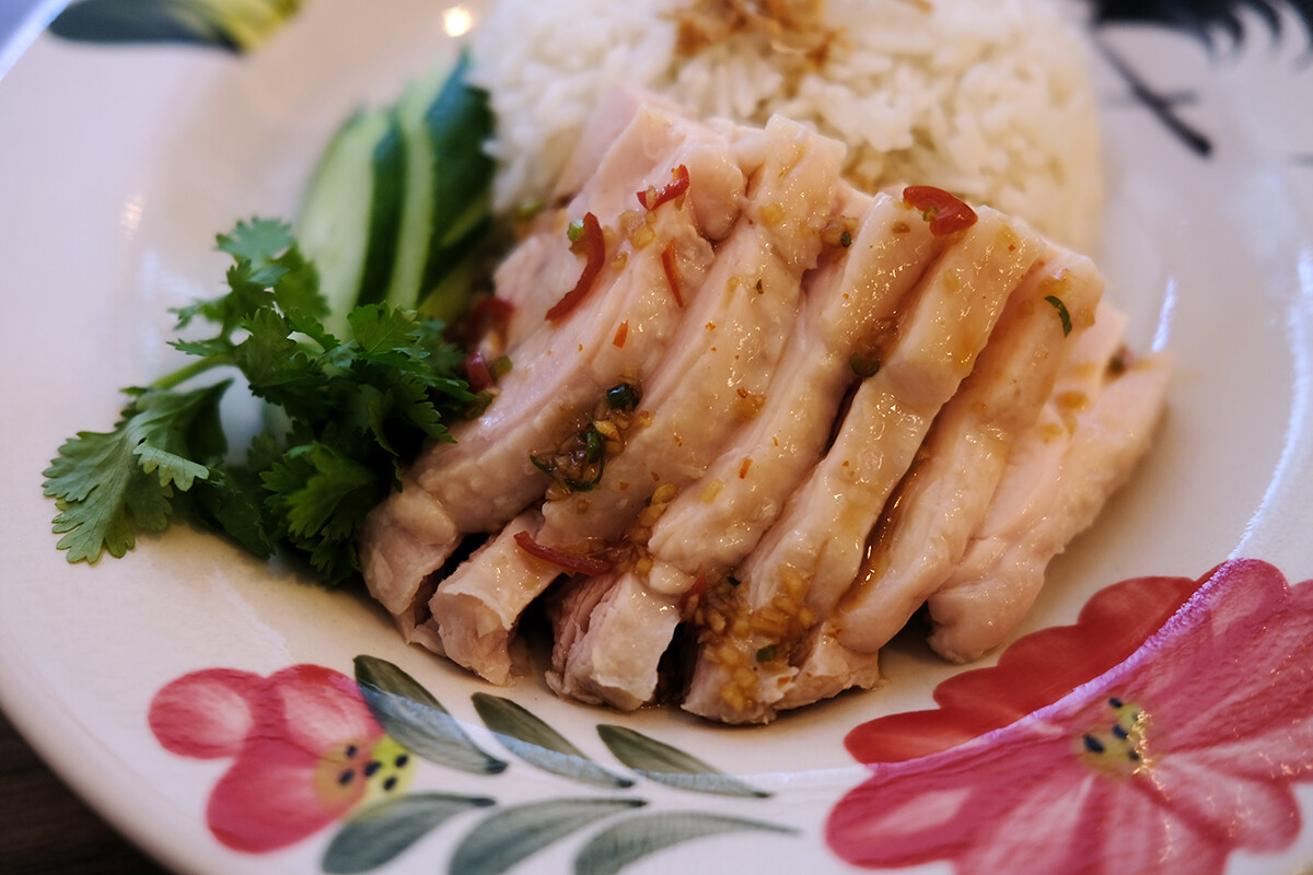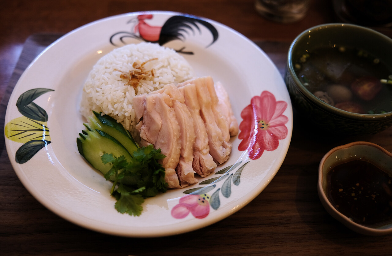 せっかくなんでもう一つ何か食べよう。ライスメニューは週替わりでカオマンガイは来週はもうないというので注文。ご飯は少なめにしてもらった。これも優しい味ね。鶏肉も臭みなく柔らかく美味しい。タレだけでなく途中からスープをぶかっけでいただくのが好き。