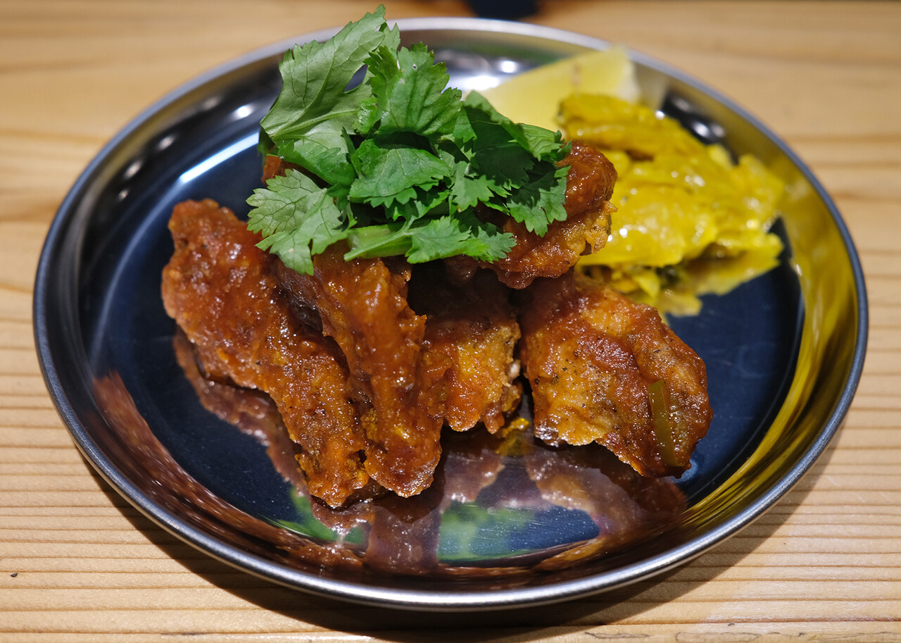 朝から鹿児島県鹿屋市へ行って、夕方帰社して仕事片付けて【夜のクボ】へ。【クボカリー大名店】が【夜のクボ】としてスパイス酒場営業をスタートしました、というか再開ですね。COVID-19前の【夜のクボ】よりも価格設定を下げて小皿料理で屋台風に。ワンドリンクオーダーでカレーのみの注文も出来る。 どれも重くなくしつこくなく激辛でもなく食べやすかった。そしてお酒に合うだろうなぁ。〆のジャンキー麺も美味しかったー。女性客も多かったね。 大楠店の店長を長らくやっていたススムくんも大名の夜にシフトしたらしい。エネルギッシュな久保店主のもと、みんな男臭く頑張ってるね。