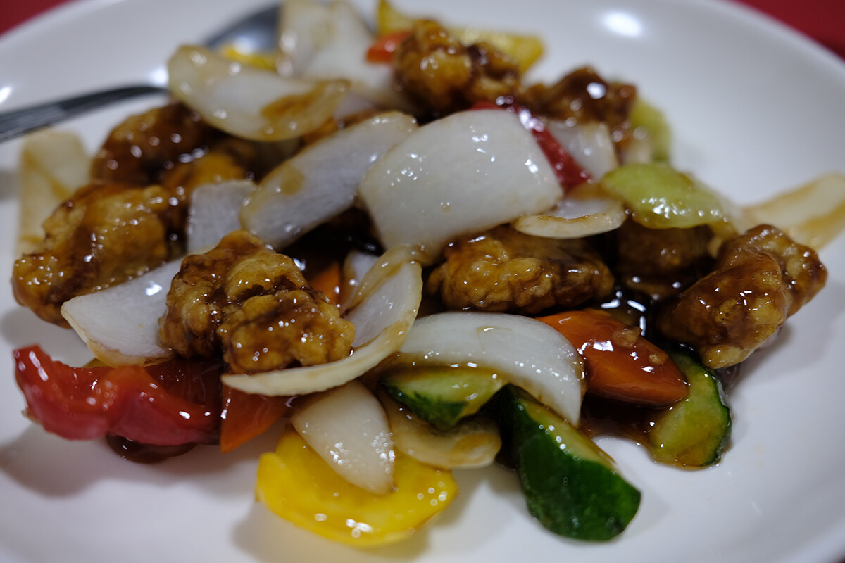 今日のお昼は知人とランチ待ち合わせして美野島商店街にある【紅蓉軒】。きれい、安い、ボリューミー、美味しいで人気の町中華。3人で5品。満足。