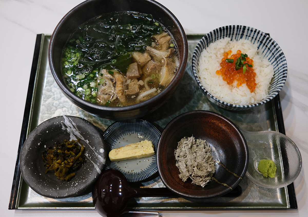 週末になると遠方からもいくら丼目指して行列も出来るらしいが、平日でも近場の人が来られるようにうどんセットや、夜はおばんざいメニューで居酒屋営業もやっているとのこと。関西風というテーマがあり、うどんやおでんの出汁は少し甘めに仕上げられている。