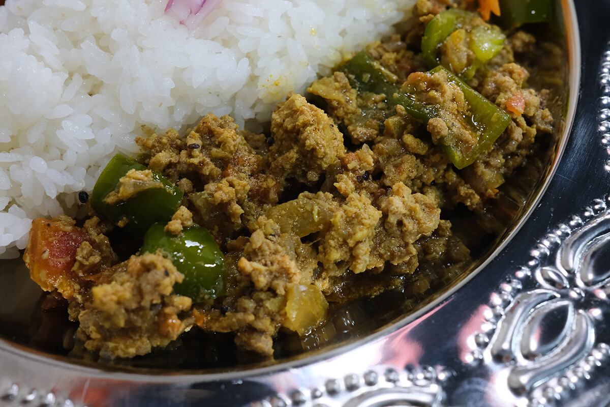 お昼は美野島【みわCurry】でレモンチキンカレーとピーマンの合挽きキーマカレー。ラッシーもつけて1,350円なり。