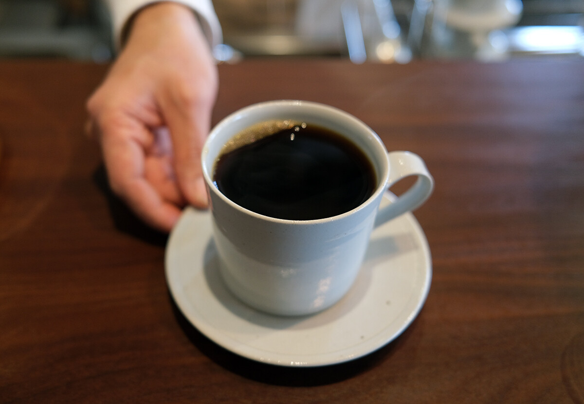 そして週2回くらい来てる【珈琲いわくま】でブレンドホットコーヒー。隣のアパートが外観改装しててオシャレな通りになった感じ。