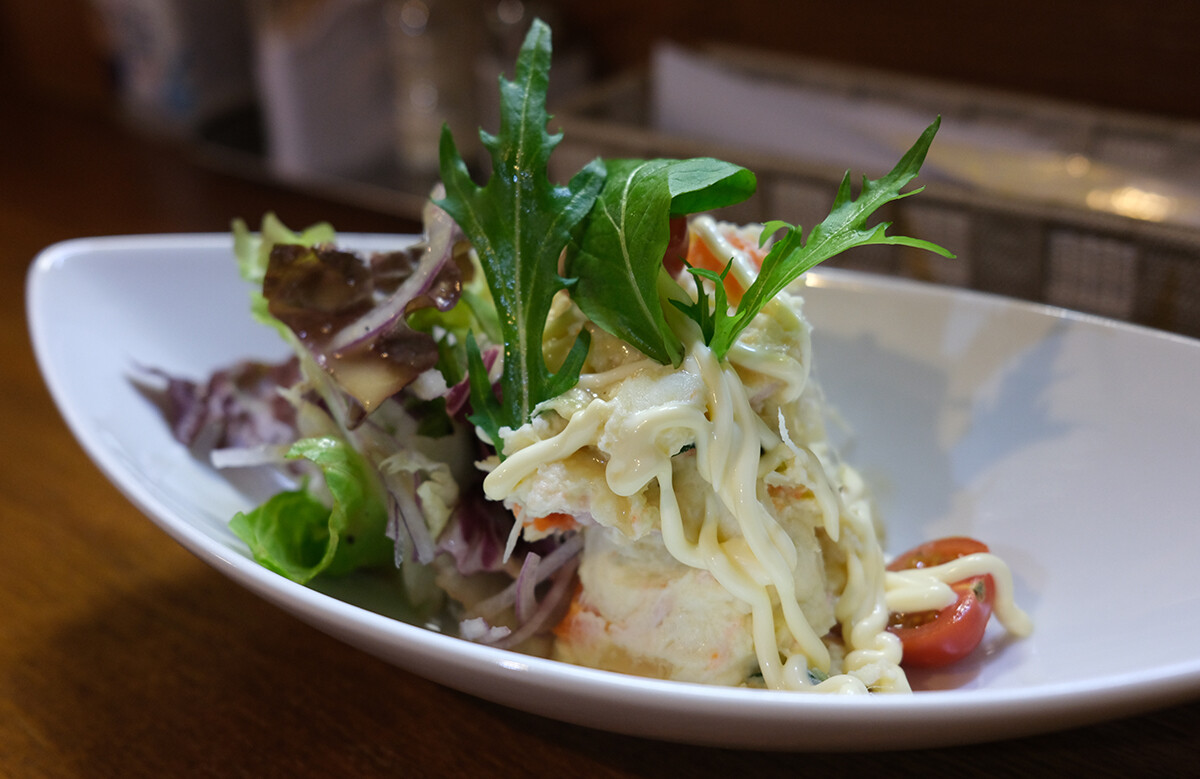 満腹満足の2,000円なり。ランチタイムよりお高めだけど肉厚でボリュームも多め。この時間はランチタイムよりのんびりしてるのでゆっくりいただけるのも僕が夜に行く理由。売り切れている時も多いポテトサラダ(650円)があったのでいただき。