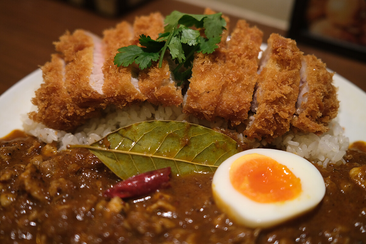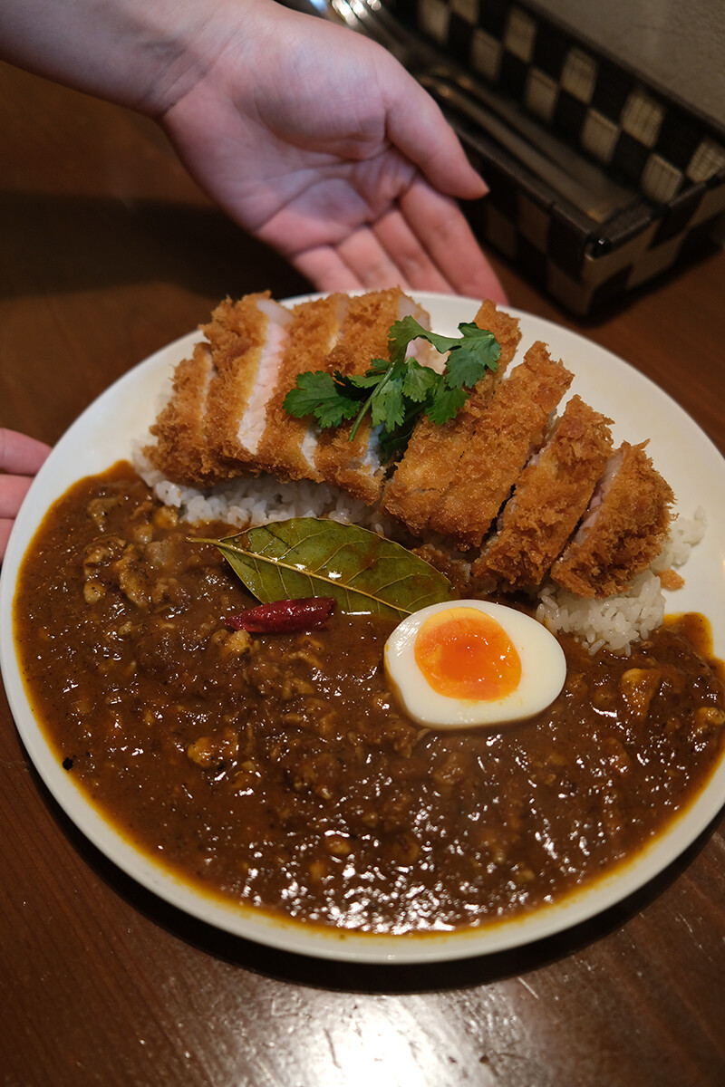 月一回火曜夜の【オカノカリー】。今夜は親鶏キーマカレーにロースカツをトッピング。