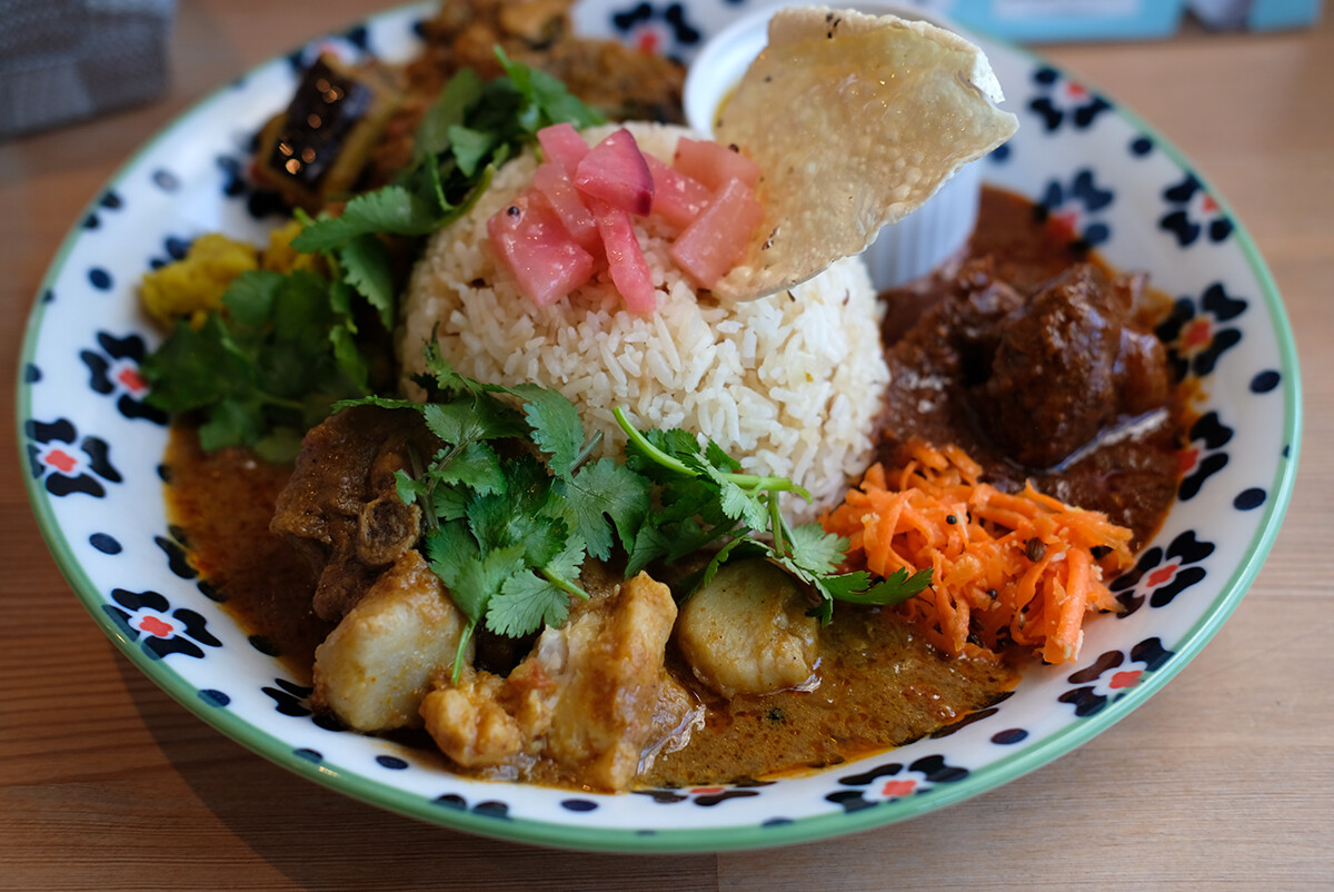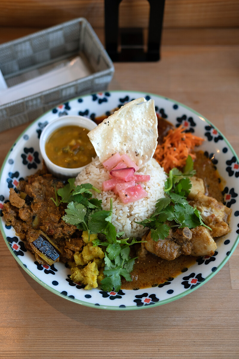 【タマガワカリー ドット コム】のカレーから茹で玉子が消えてた!!鳥インフルエンザの感染拡大で玉子の供給量が激減してるらしいね。玉子大好き人間にとっては一大事だ。カツ丼、親子丼、オムライス、天津飯たちは危機を乗り切れるのか。ということで今回は三種盛りカレー。