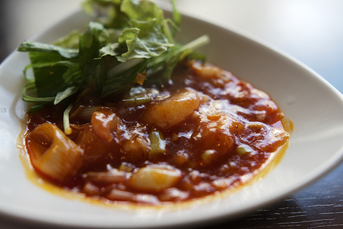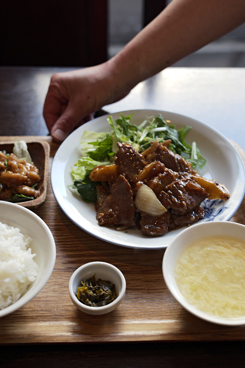 お昼は【杏仁荘】の周年記念で、年に2〜3回しか登場しないメニューである牛リブロースオニオンソース定食。柔らかくてウマ〜。