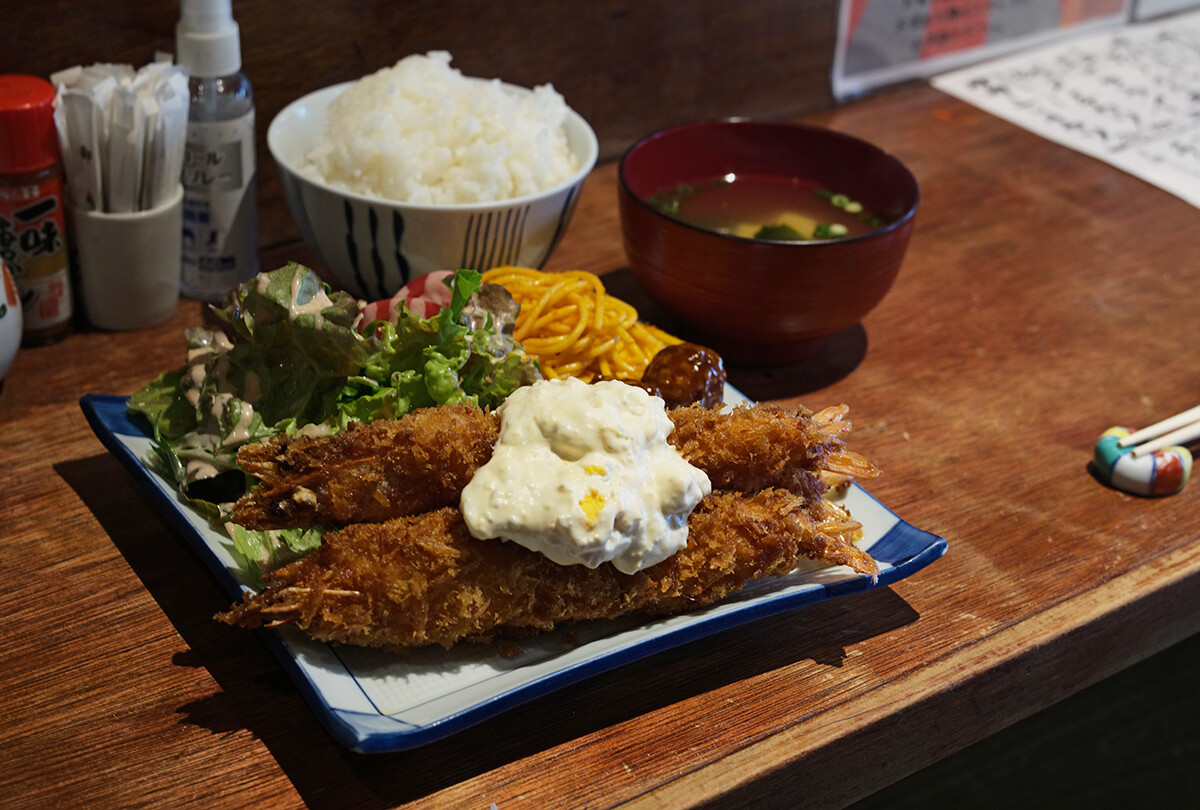そしてお昼は【文治】で平日限定ランチへ。今日は有頭エビフライを選択。あ〜〜〜美味しい。頭も全部いただき。そして大盛りご飯でお腹いっぱい。隣のおじさん客は小さいお椀だったのに、俺のは大きかった。これで880円って幸せ過ぎる。
