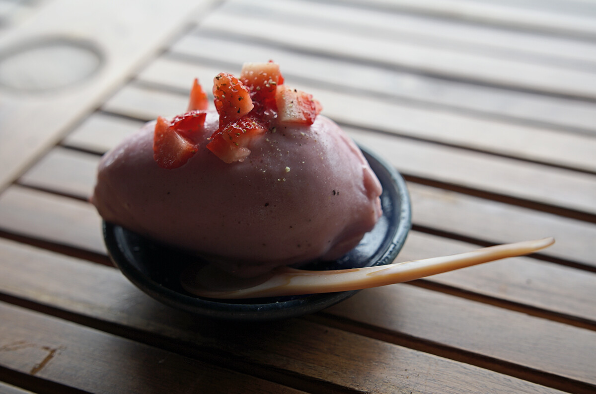 今日も店前の畑で採れる野菜などを使った料理が美味しゅうございました。注文が入ってからルッコラやバジルやイチゴなどを収穫されてます。レストランというか農家の実家に帰ってきたら畑で採れたものを使ってご飯作ってもらったって感じですね。ちょっとした小旅行気分になれるのは間違いなし。