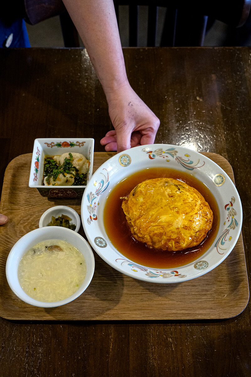 メニューを見るまでもなく「天津飯!!」と注文。「ですよね」と野口オーナー。「天津飯じゃなかったら笑えますよね」とヨーコちゃん。