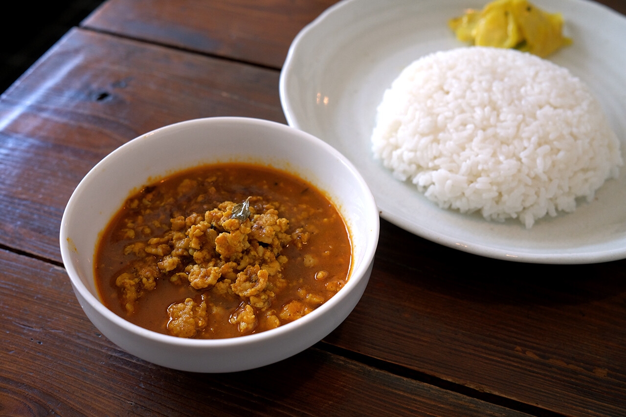 風は気持ちいけど、ちょっと汗ばむくらい天気が良い木曜日。お昼に大野城市【みやうら商会】でココナッツキーマ。3種類だけしかメニューがないキーマカレー専門店だけど、ココナッツキーマが一番安くて一番すぐに出て来る。料理工程が他のものより少ないので時間がかからないらしい。