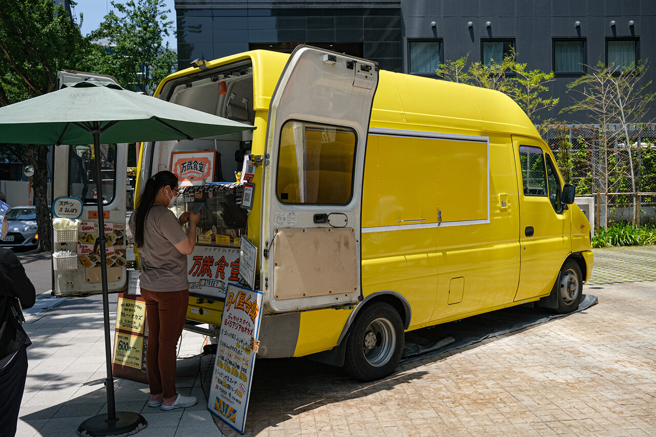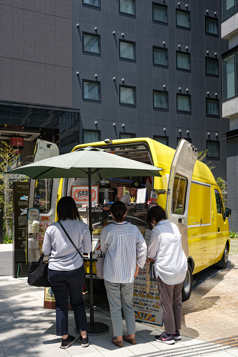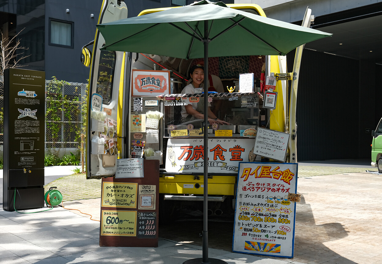 半年ちょっとぶりに【万歳食堂】へ。百道で週4回、博多で週1回のペースで出店しているキッチンカー。正午前から行列が出来る人気店です。