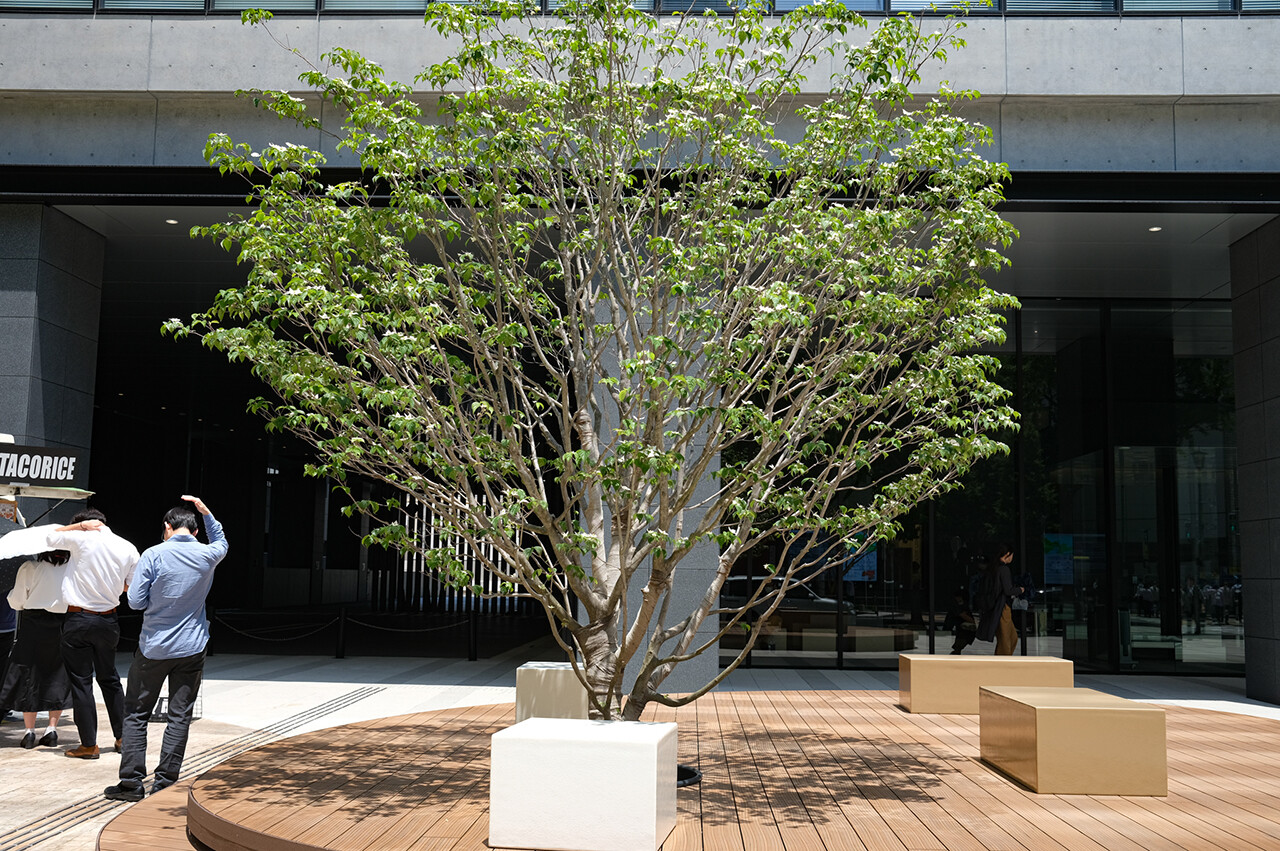 博多イーストテラスはビル前にベンチなどもあるので、そこで弁当広げて食べました。たまたま友達が同じく【万歳食堂】目当てでやって来てたので、いろいろ話をしながら楽しいランチ。