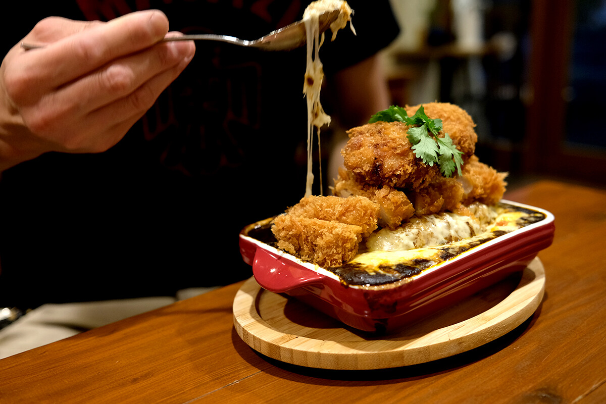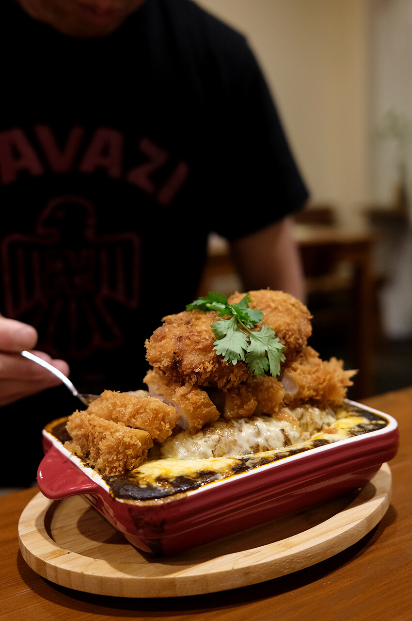 そして独身オジサンたちは2人とも大食いなので大盛りを食べる。特に綾部(本名は井田)さんは、焼きカレー特盛りにメンチカツとロースカツをトッピング。背が高いのでカロリーもたくさん摂らなきゃだね。