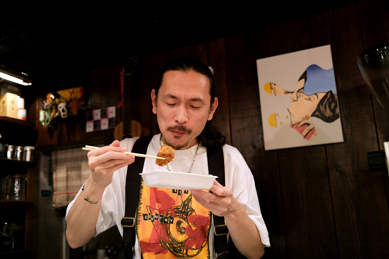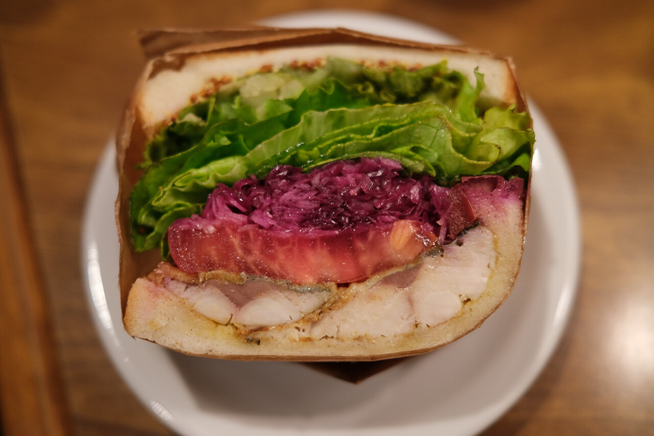 ということで【珈琲小林】で、お客さんが引けたタイミングで唐揚げ弁当。1個はケンゴ店主へお土産。お昼にここで出張販売していた【名もなきサンドイッチ屋】のサバサンドもゲット。「父の日ですよね。いつもありがとうございます」と香椎の息子から声をかけてもらった。「そやね、今日も弁当買ってきたしね」