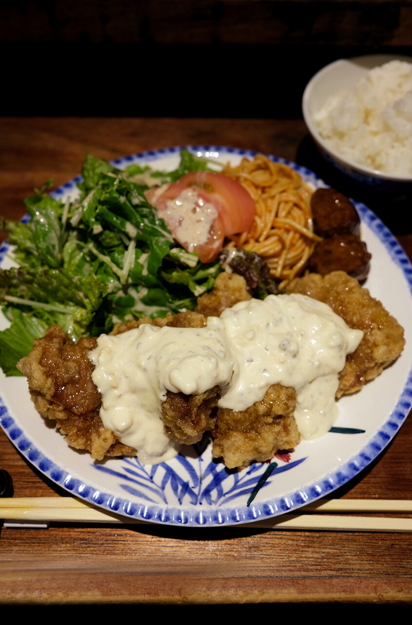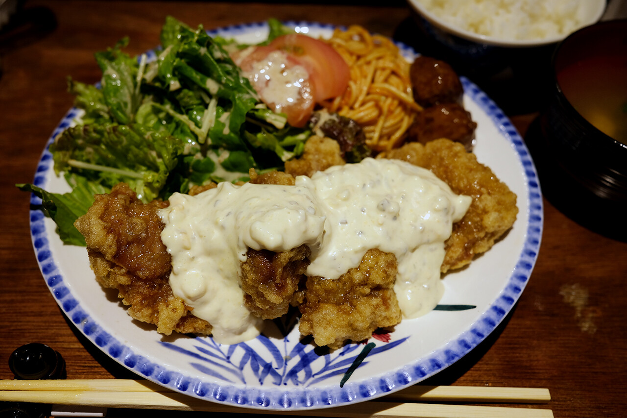 食べれるけどさー。そこ無理して勝負せんでいいやろ。【じゃらん食堂】のタワーカレー以上かもしれん。そんな超絶満腹になる【文治】のチキン南蛮定食です。腹ペコお兄さん、寄ってらっしゃい。