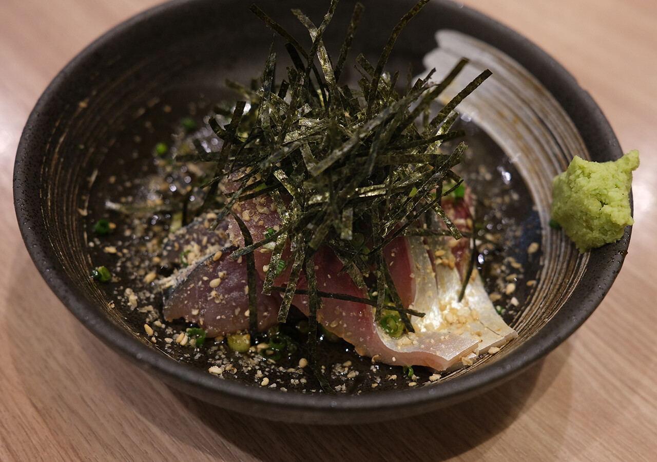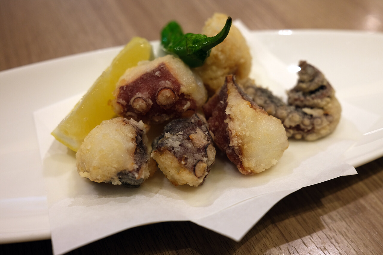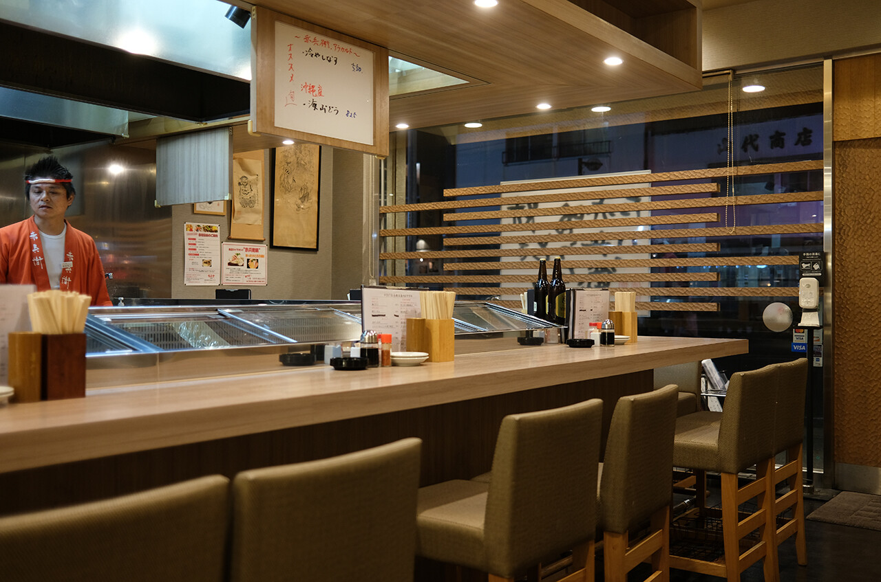 綺麗な店内、明るいカウンター席が外からも目立つが、奥にテーブル席がたくさんあり、40人くらいの団体席も作れるらしい。平日はカウンターはビジネスマンなどで賑わい、週末は地元客でテーブル席が賑わうそうだ。地域的に山笠の集まりもよく行われているみたい。