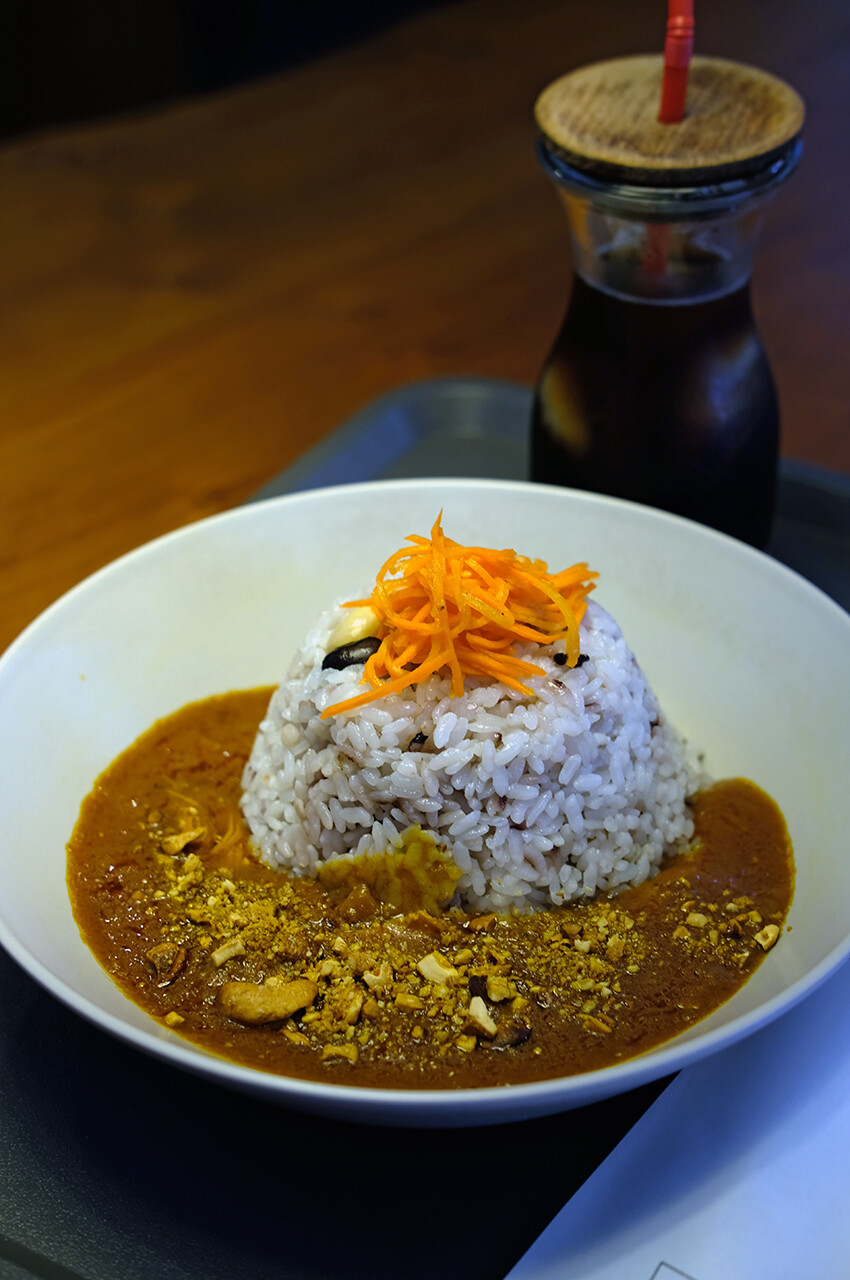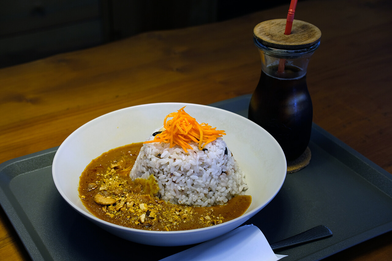 今日のお昼は【ホピ珈琲】でカレー。もう5周年なのね。カレーも定着してきてお店の売りになってる。じっくり煮込んだ自家製カレーは、トマトの爽やかな酸味と玉ねぎの甘みが良い感じにまとまってるチキンカレー。ライス大盛りにしたら、まあまあ多かった(笑)。