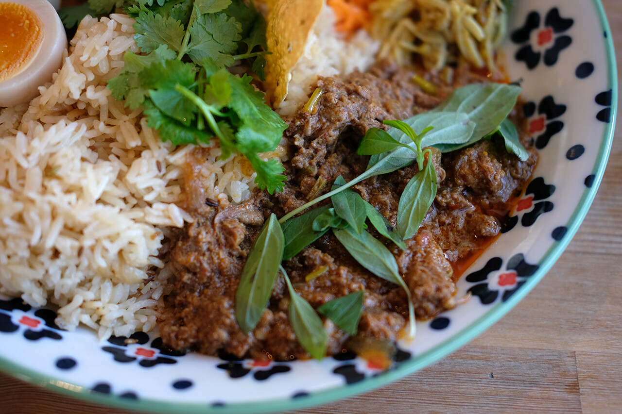 【珈琲いわくま】でホットコーヒーからの【タマガワカリードットコム】でハマチのカレーからの【PLASE.STORE】でアイスコーヒー。