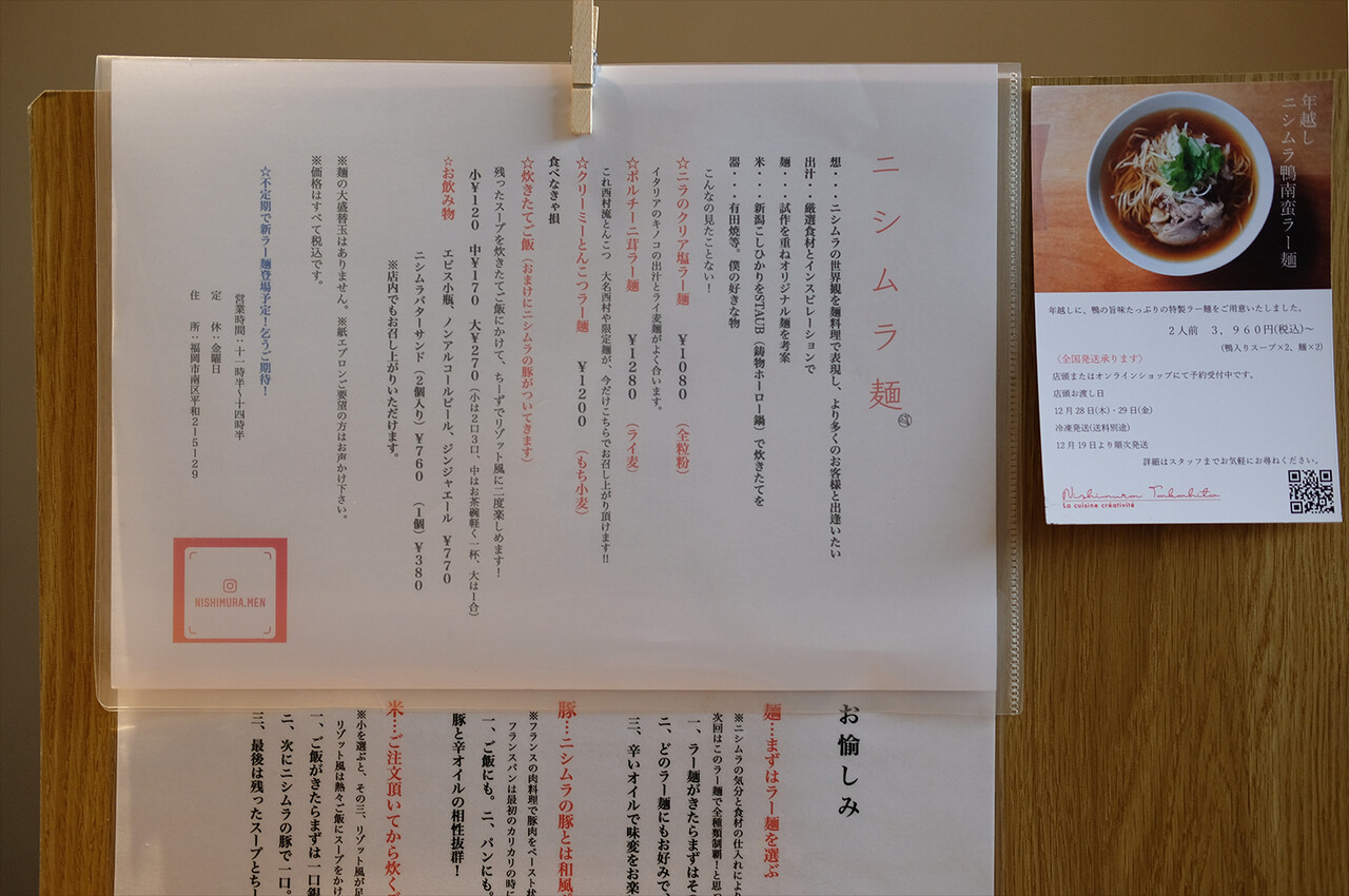 ※現在、【ニシムラ麺】をランチタイムに営業中。