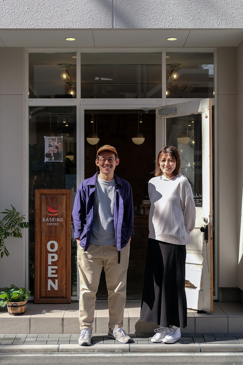 食後に【Basking Coffee 春日原】に寄ってホットーコーヒー。ついでに店長夫妻の記念撮影。「夫婦2人の写真はあんまりないんですよ〜」とのこと。そんならもっとくっ付いてもらえば良かった。