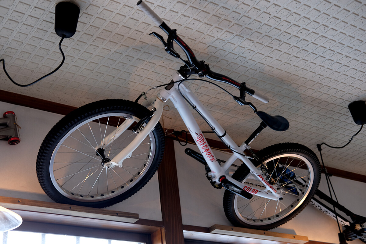 ちなみに、ここはトライアル競技向け自転車の販売もやってます。しかし自転車屋さんが趣味でカレーを始めたのではなく、元々ハンバーグなどが人気の洋食屋さんだったのです。洋食屋さんがスパイスにハマってカレー専門店になんたんです。そして趣味のトライアル自転車も仕事にもなってるということなんです。