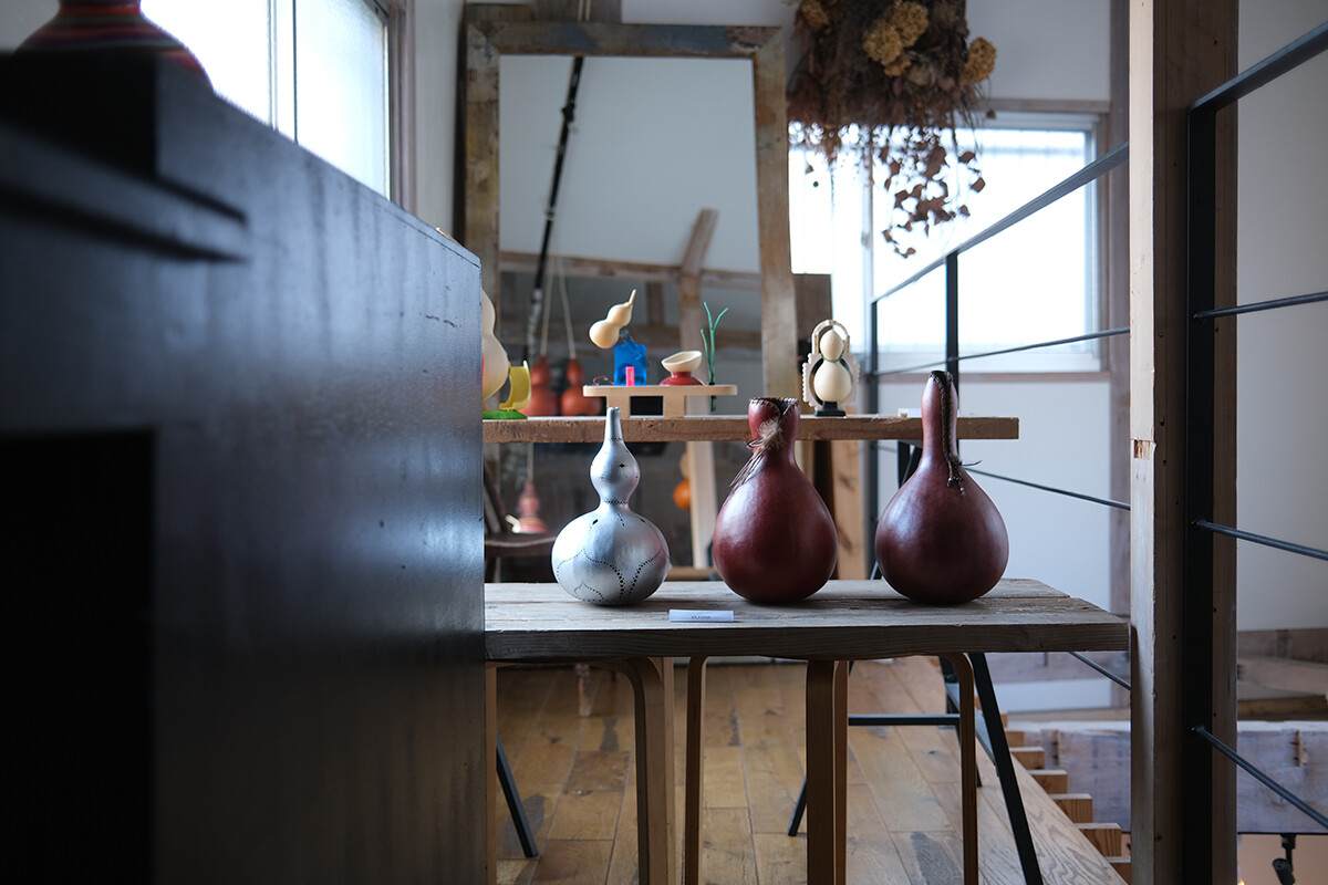 2階ではひょうたんのイベントが開催されてます。ランプ、スピーカー、置物として使えるひょうたんを使った工芸品。いろんな作家さんが個性を出して作品を作られてます。展示販売会なので興味がある方はお早めにどうぞ。売り切れるよ。