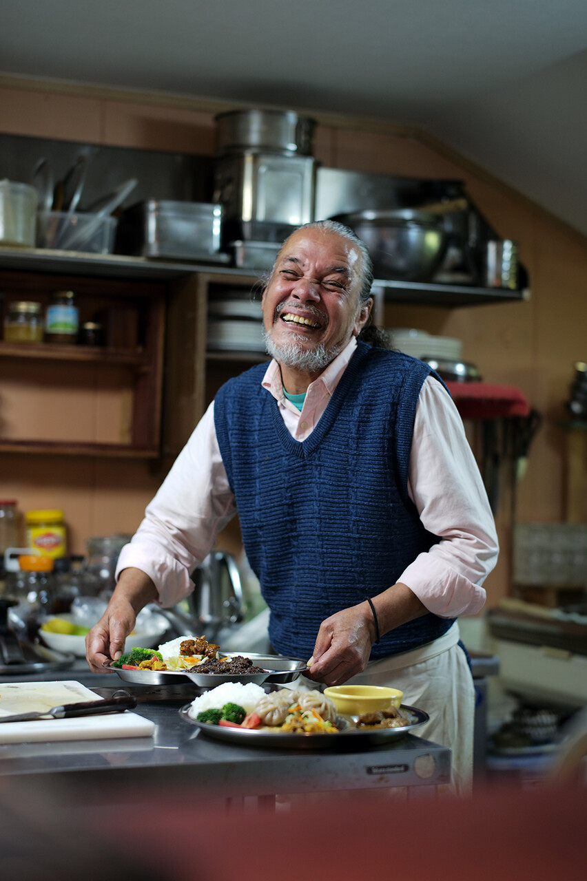 ネパール出身のクマールさんです。25年間福岡市中央区でネパール料理と雑貨の店【マイティガル】を開いてましたが、2022年熊本県天草市の山奥っぽい場所に移転されました。
