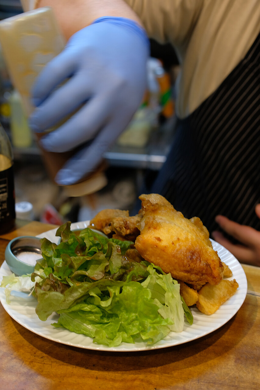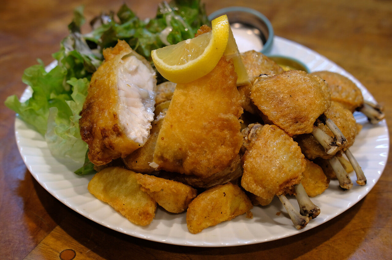 前菜からスペアリブからチキン&フィッシュ&チップス。わー、何人前??