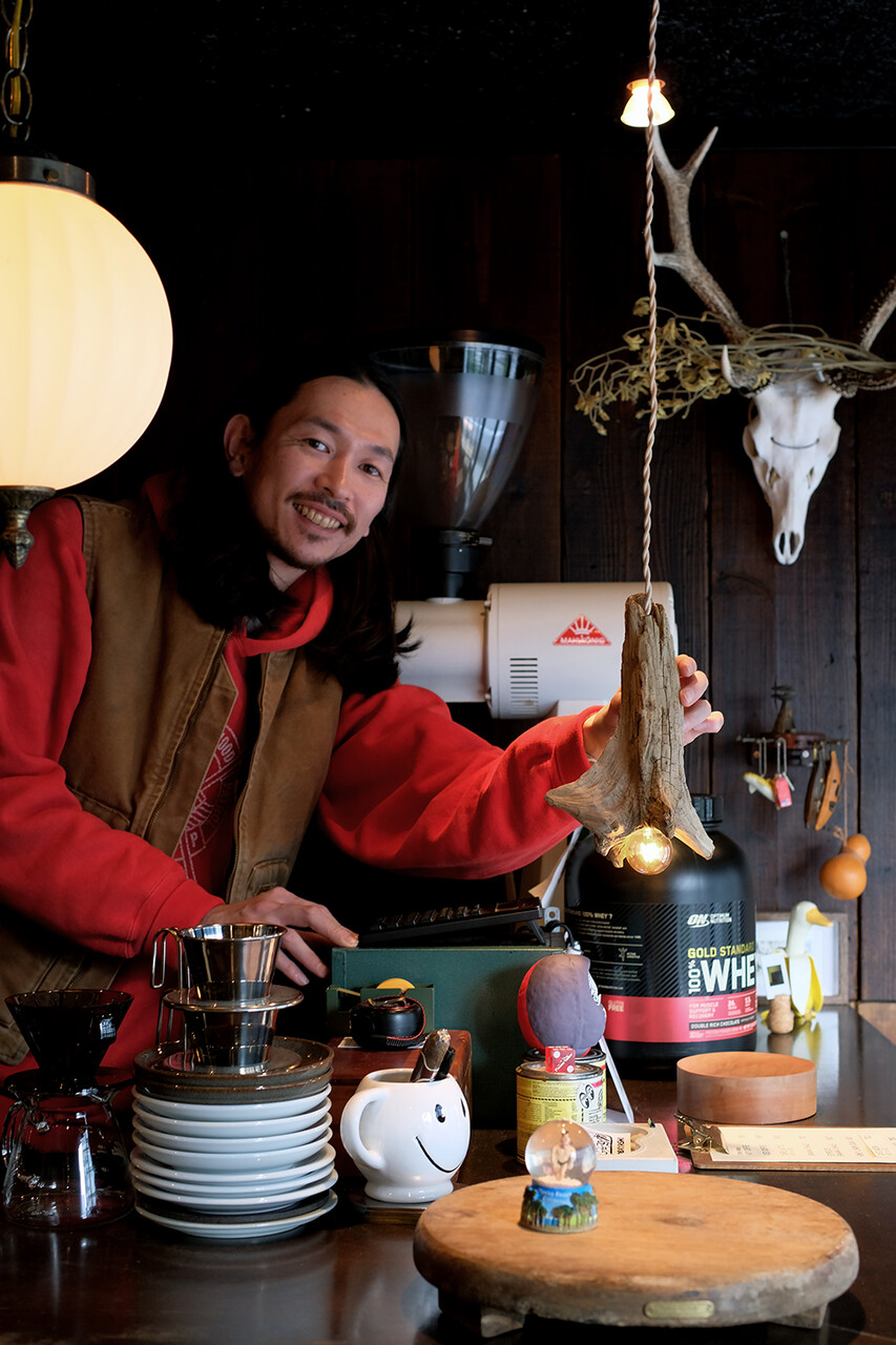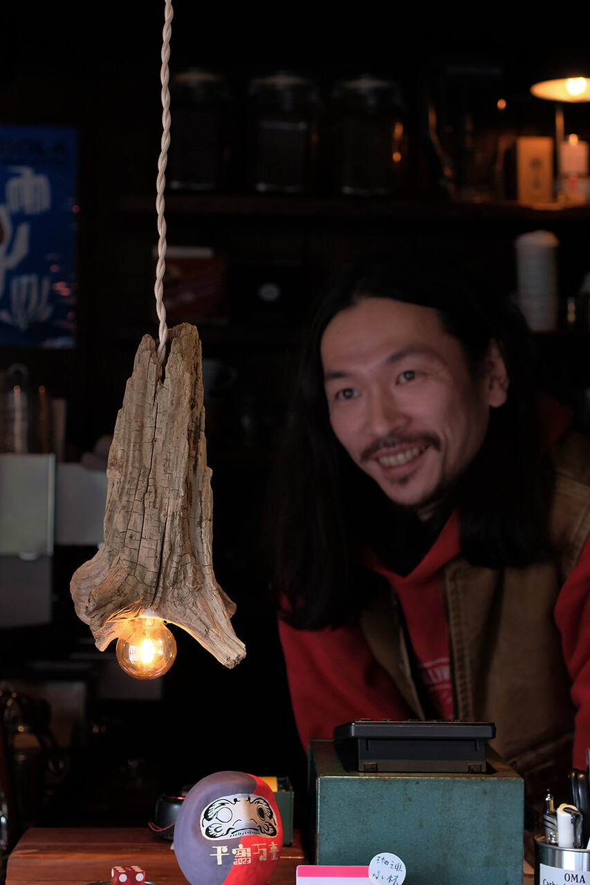 【NIYOL COFFEE】の地下ギャラリーで【wood'arbre】(ウッドラヴル)さんの流木ランプのPOPUPが開催中だった。