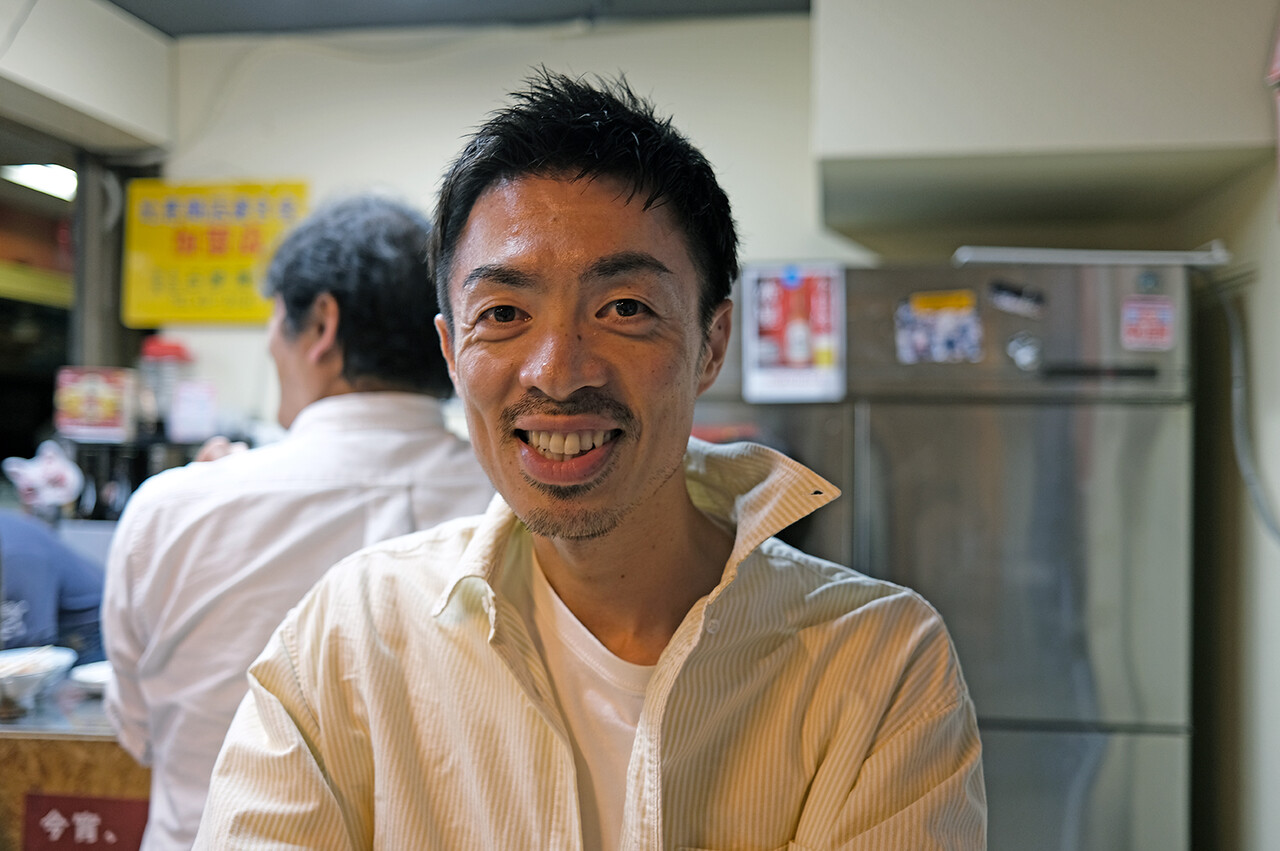 仕事帰りに【FAKE IT COFFEE】に寄って、今月の『muto』記事の件で打ち合わせ。閉店後に近所の【占部商店】で立ち飲み。
