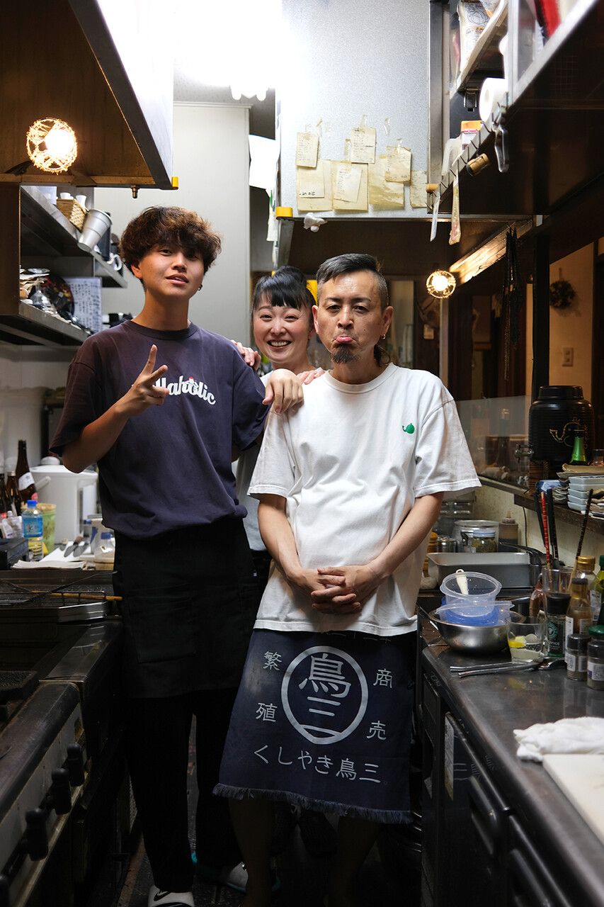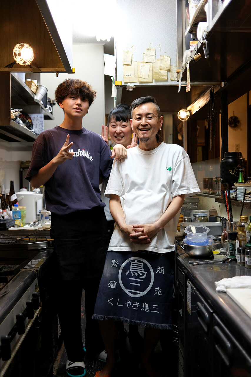 他にはポテトサラダ、牛さがり、レバー、つくねがおすすめ。今日も帰り際に記念写真。今日のスタッフは次男さんでした。
