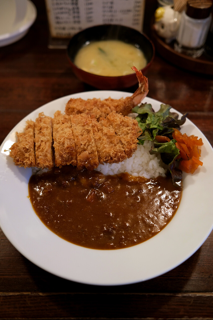 カツカレー+海老フライ+味噌汁=950円