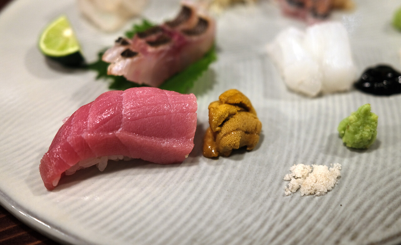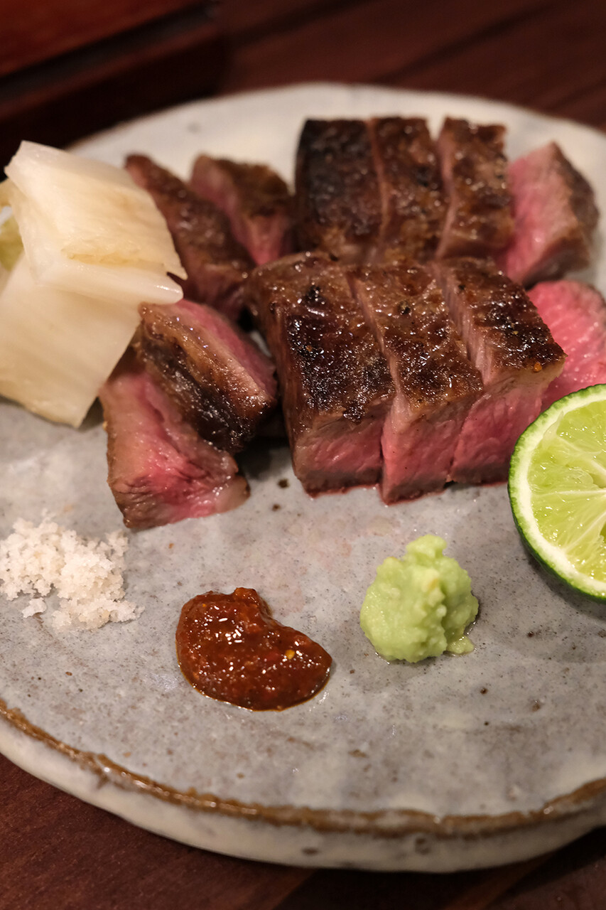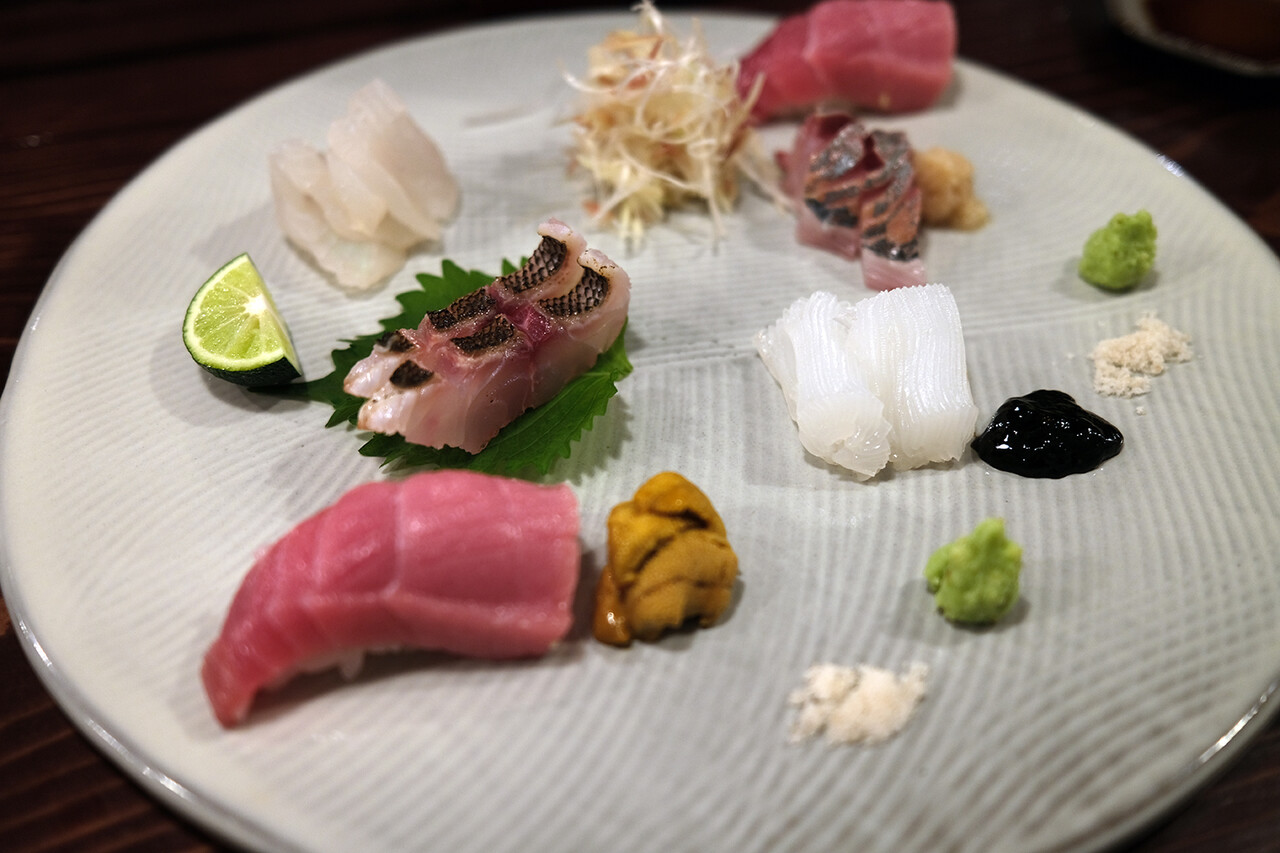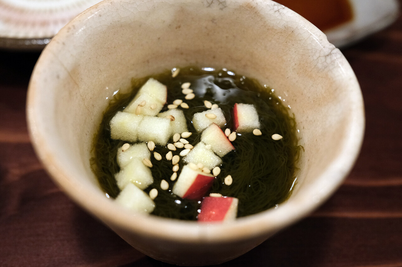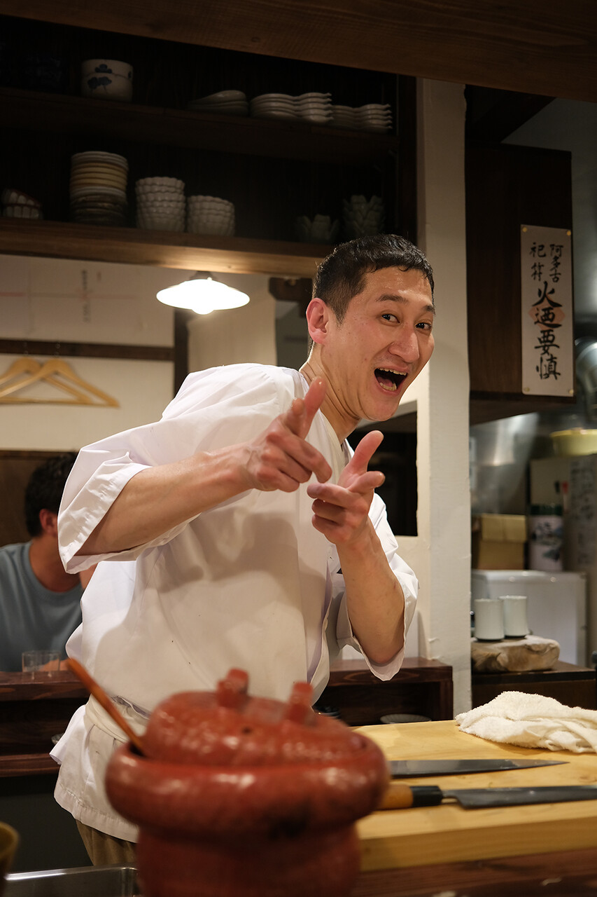 カウンター中心(18席くらい)と座敷2テーブル(8席くらい)。料理は、魚、肉、野菜を幅広く扱った和食店。拓ちゃんに鍛えられた幸志郎くんなので間違いないですね。拓ちゃんの弟子といえば、丸メガネ25歳の彼も一緒にこっちに来てしっかり片腕として腕を振るってました。