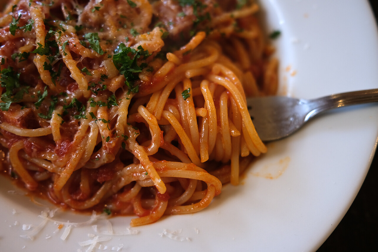 お昼は久しぶりに志免町【アンジェロ】でモチモチ生麺パスタのランチ。ソースは日替わり3種の中から、ベーコンのトマトソースを注文。モチモチ生麺が美味しいのでここに来たら大盛り注文が通常になってきた。330円で生麺が1.5倍になるんだけど、なかなかお腹いっぱいになる。