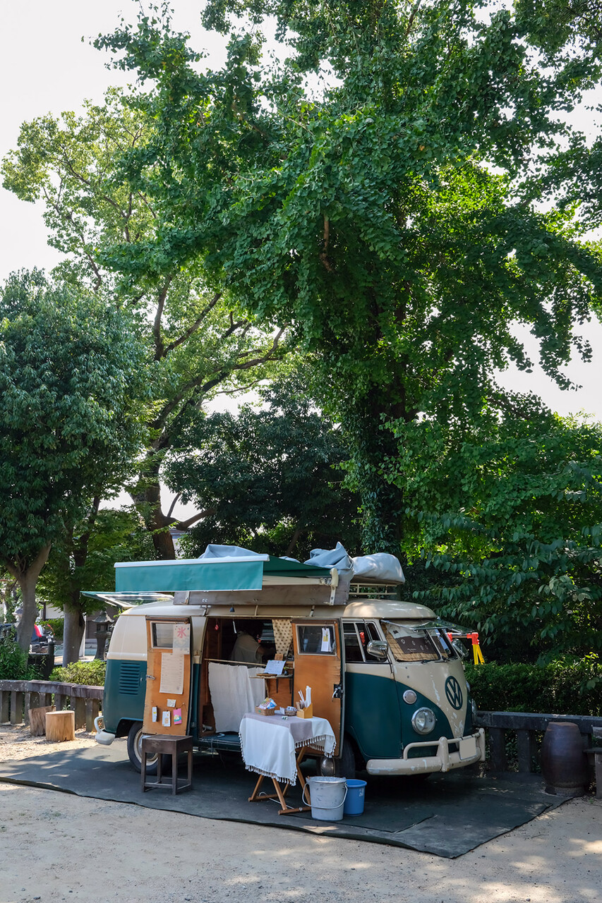 久留米市でワーゲンバスの珈琲屋さんっていうと【3po cafe】のマサやんだけど、現在はイベント以外で出動せず通常はしっかり店舗営業中。ということで、今日は4年前から櫛原天満宮内で同じくワーゲンバスで珈琲屋をされている【こかげや】さんにやっと行けた。