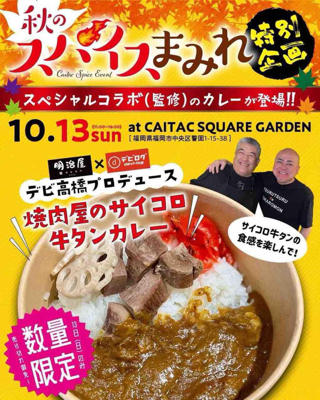 13日はデビ高橋さんと【炭火博多焼肉 明治屋 古門戸店】の福永さんのコラボカレーも楽しみです。