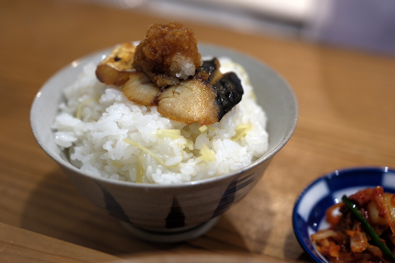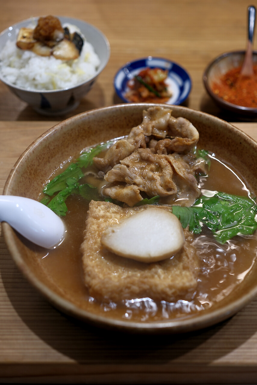 現在昼営業だけになってる【にく豆腐しげ子】にお久しぶり。にく豆腐1,100円なり。甘辛なタレで炒められた豚肉、ホクホクな里芋、ジュワジュワな厚揚げが和風出汁のスープでグツグツ。生姜ご飯に塩サバ、キムチ。最高。