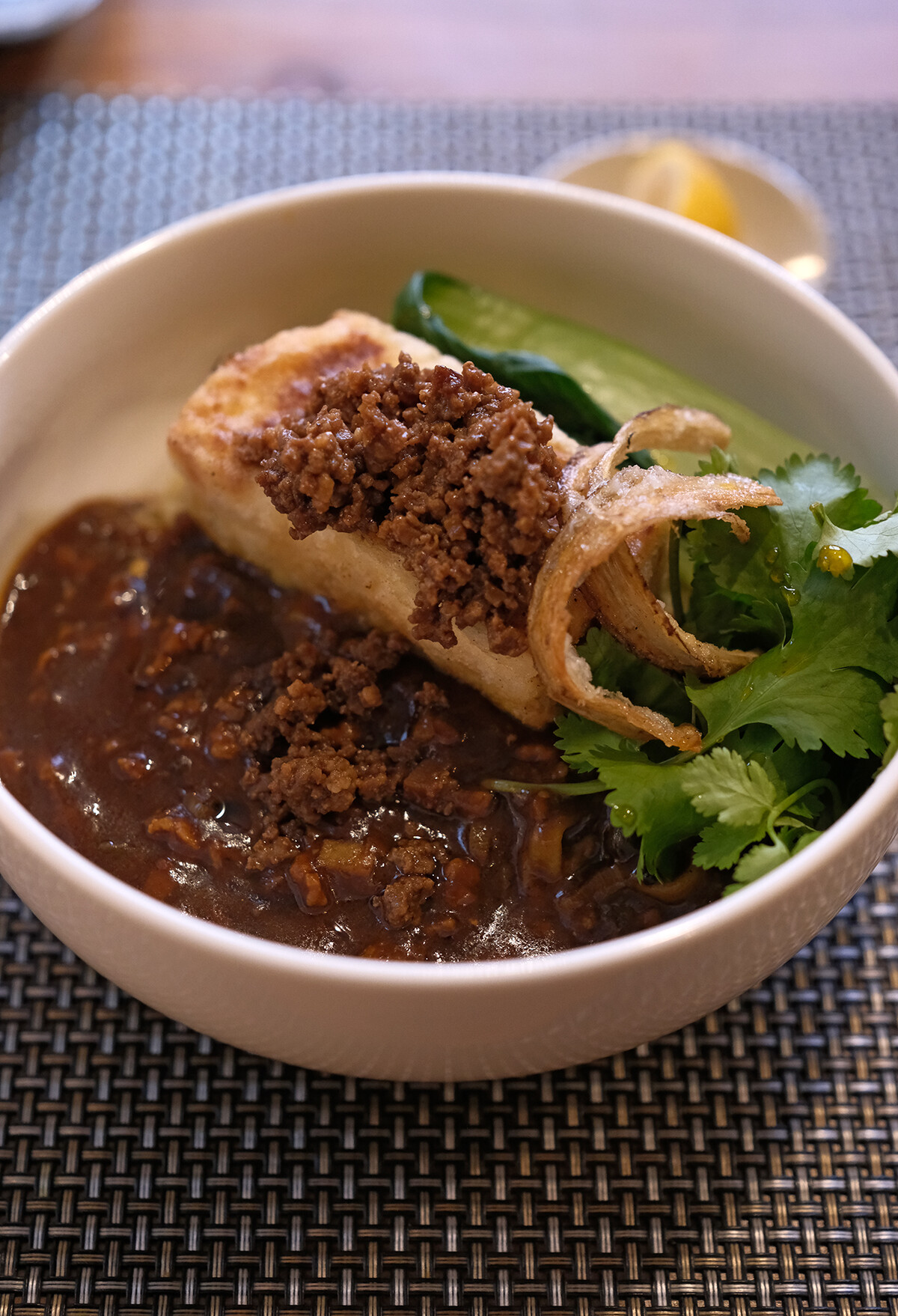 水曜日〜金曜日のみ法子さん1人でワンオペ麺ランチをしている【千酒万菜 うちだ産業】。今日は数量限定の麻婆麺をいただき。やっぱり美味いね〜。僕にとってここで食べられる料理は、カレーでもなくてスパイス料理でもなくて、10年以上前から大好きな“法子飯”。それはずっと変わらないな。