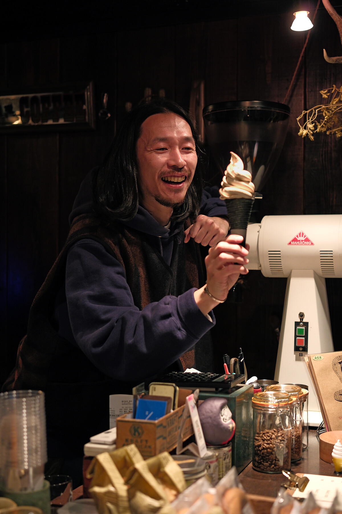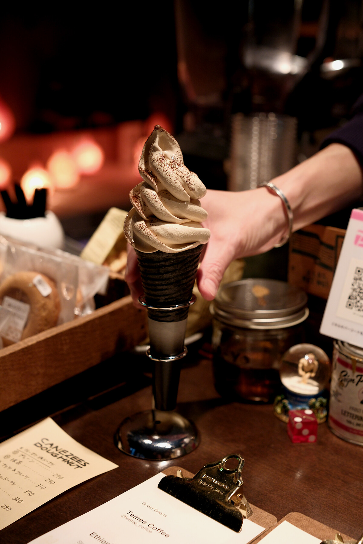 昼は一歩も事務所から出なかった。仕事帰りに事務所近くの回転してない回転寿司【大河すし】で晩ごはん、からの【珈琲小林】でコーヒーソフトクリーム。この週末は【ケンジーズドーナツ】の焼きドーナツ販売中です。